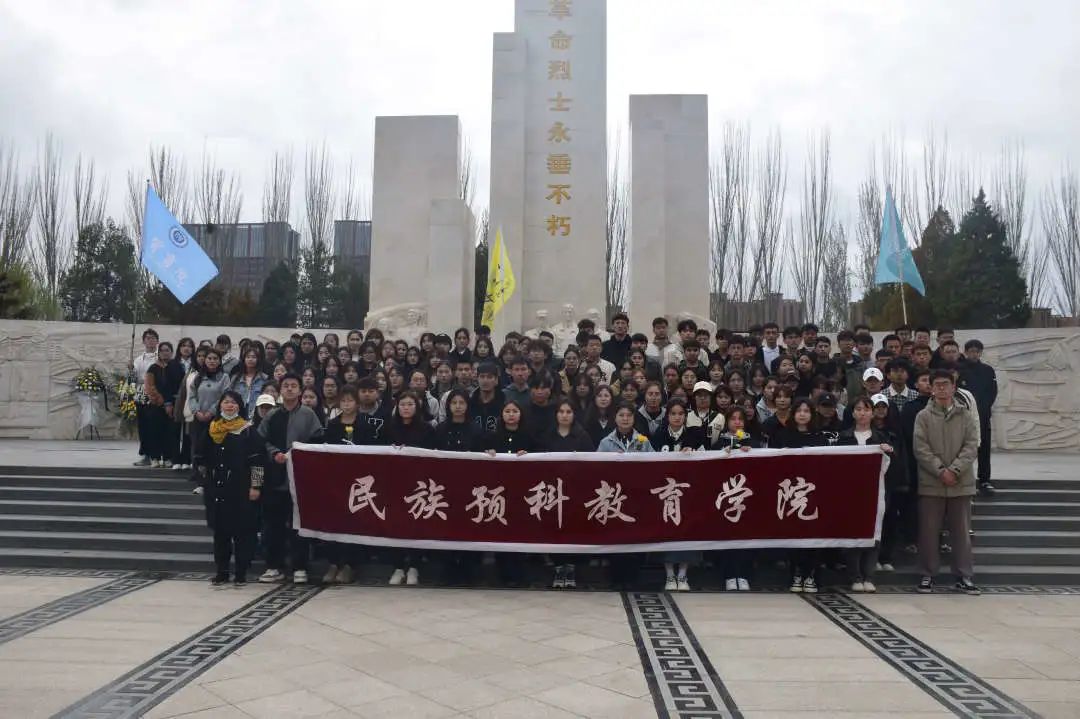【澳门十大信誉网赌大全新闻中心讯 民族预科教育学院】清明节至,小雨纷纷,松柏凝翠,春潮涌动。4月5日上午,民族预科教育学院全体入党积极分子、新疆籍学生在辅导员李红娇老师的带领下怀着无比崇敬的心情来到银川烈士陵园,瞻仰烈士墓碑,悼念革命英雄,缅怀先烈丰功伟绩,学习先烈革命精神,献上美丽的鲜花,表达思念之情,告慰先烈的在天之灵。