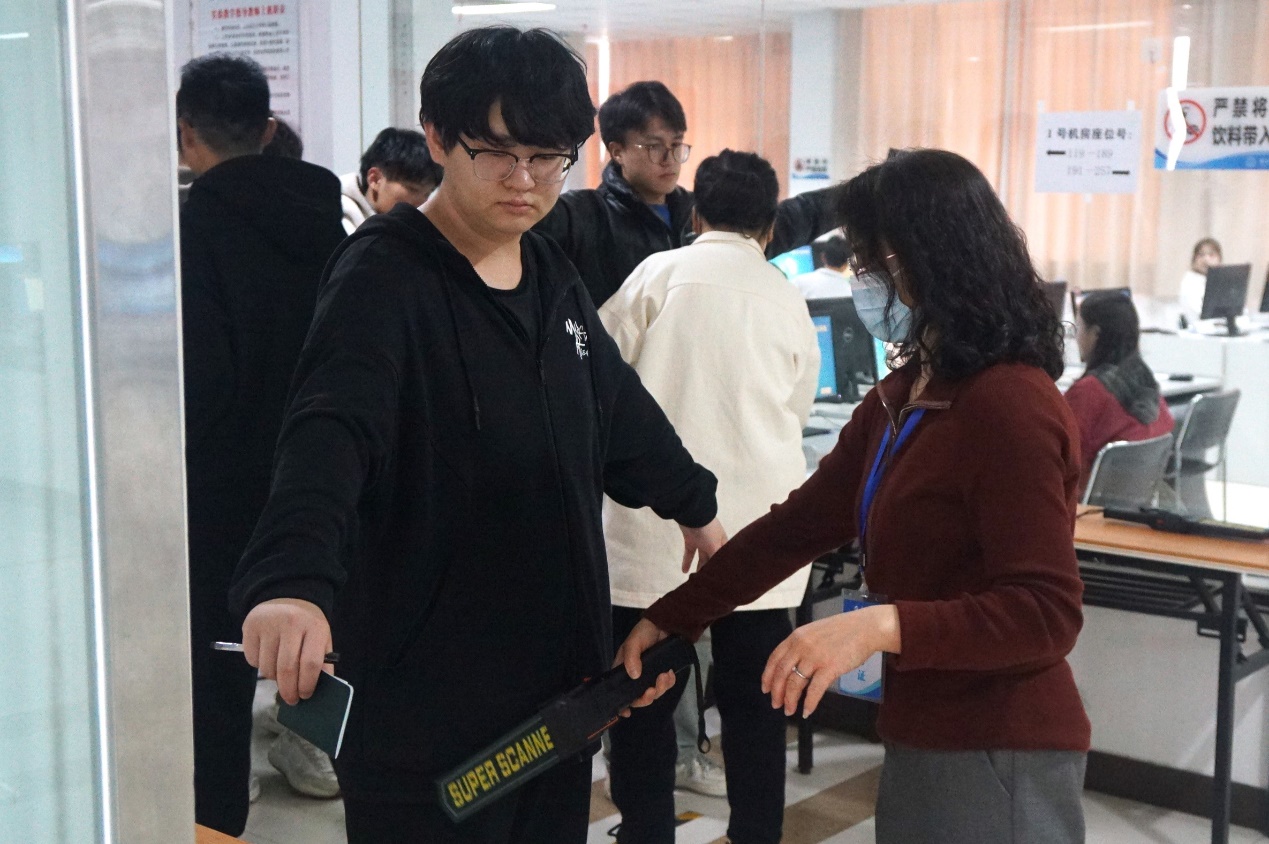 比赛前,大赛筹备工作小组的老师对比赛注意事项进行详细讲解,精细布置比赛会场,调试比赛所需各种设备,商讨比赛相关事宜。中午12点30分,各参赛队伍陆续进入候场区,监考老师对参赛选手进行赛前安检扫描和证件核验。