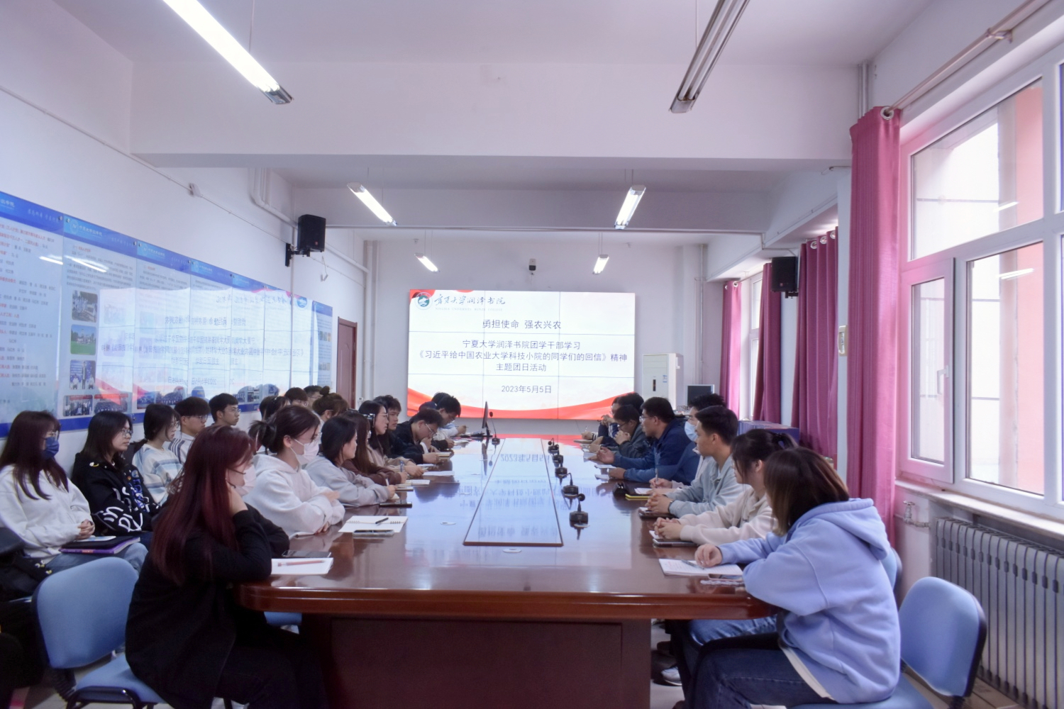 【澳门十大信誉网赌大全新闻中心讯 润泽书院】为深入学习贯彻习近平总书记给中国农业大学科技小院同学们的回信精神,激励引导广大青年坚定不移听党话、跟党走,厚植爱农情怀,练就兴农本领,在乡村振兴的大舞台上建功立业,5月5日中午,润泽书院在德晖楼103会议室组织开展学习“习近平给中国农业大学科技小院的同学们的回信”精神主题团日活动。活动由润泽书院陈虎老师主持,书院团学干部参加,活动还专门邀请了农学院的吴龙国、程国新两位青年教师共同参加。