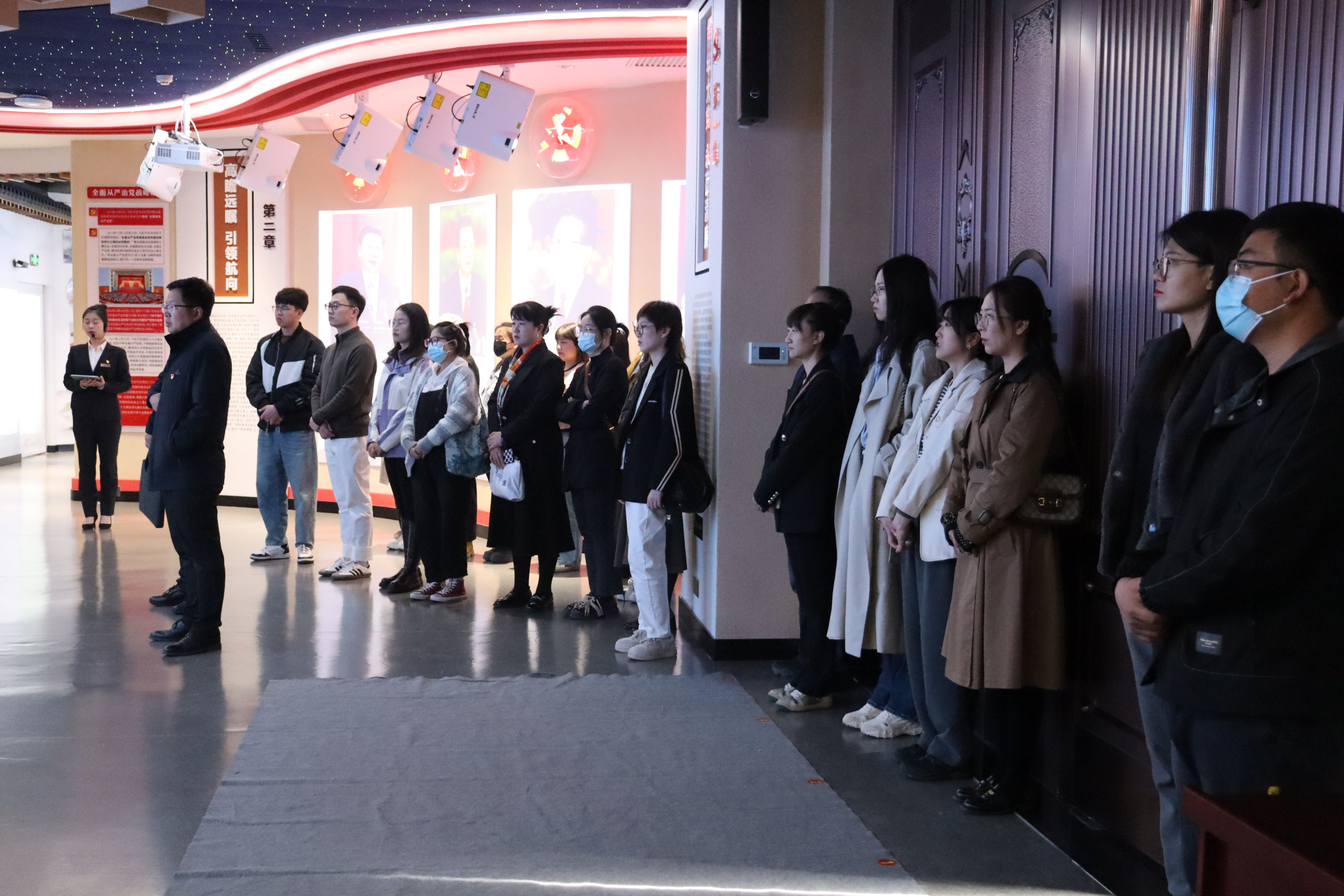 全体党员教师跟随讲解员先后参观了7个廉政教育展厅,重温了入党誓词。