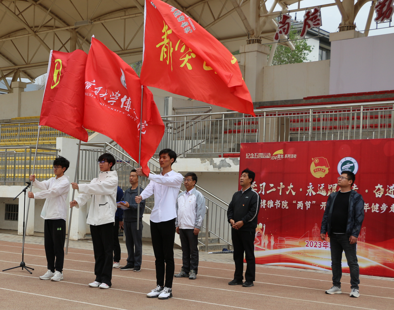 【澳门十大信誉网赌大全新闻中心讯 博雅书院】5月10日,博雅书院在中卫校区田径场举行“两节”开幕式暨“五四青年魂——健步走”活动。博雅书院院长李举,副院长李治中,书院辅导员、全体团学干部及团支部青年代表参加,开幕式由党委副书记苏军峰主持。