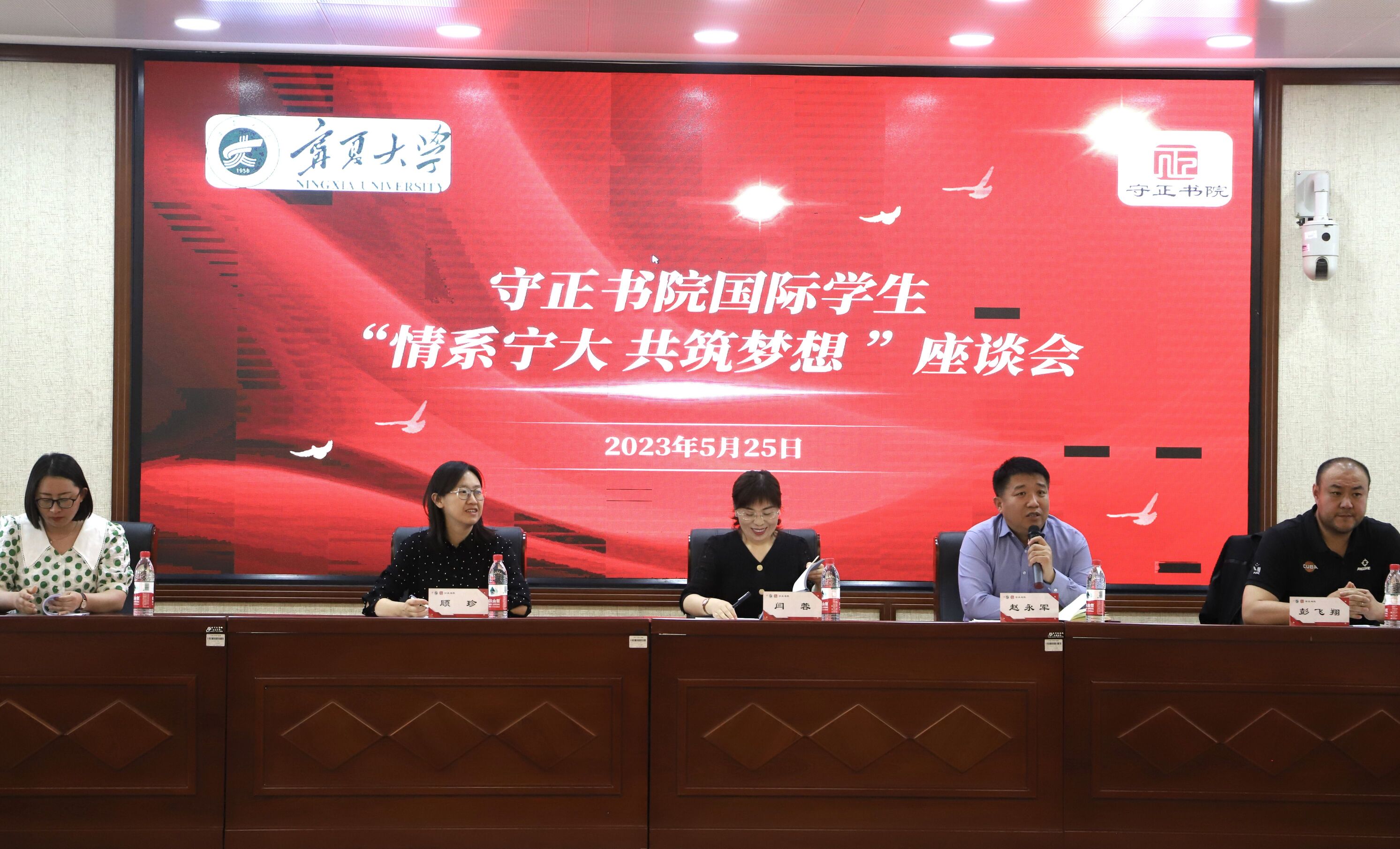 【澳门十大信誉网赌大全新闻中心讯 守正书院】5月25日下午,守正书院组织在校国际学生在怀远校区逸夫楼报告厅开展国际学生“情系宁大 共筑梦想”座谈会。守正书院党委书记、院长闫蓉,副书记赵永军,副院长顾珍、彭飞翔,部分辅导员老师参加了此次座谈会。座谈会由赵永军主持。