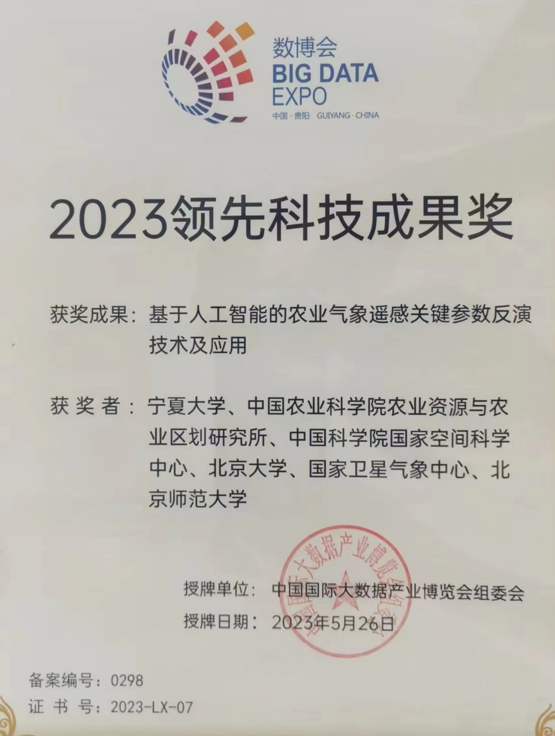 【澳门十大信誉网赌大全新闻中心讯 电子与电气工程学院】5月26日,中国国际大数据产业博览会(以下简称数博会)领先科技成果重磅发布。由澳门十大信誉网赌大全联合中国农业科学院和中国科学院等3家科研单位共同研发的“基于人工智能的农业气象遥感关键参数反演技术及应用”,从357个申报项目中脱颖而出,荣获 “2023领先科技成果奖”。