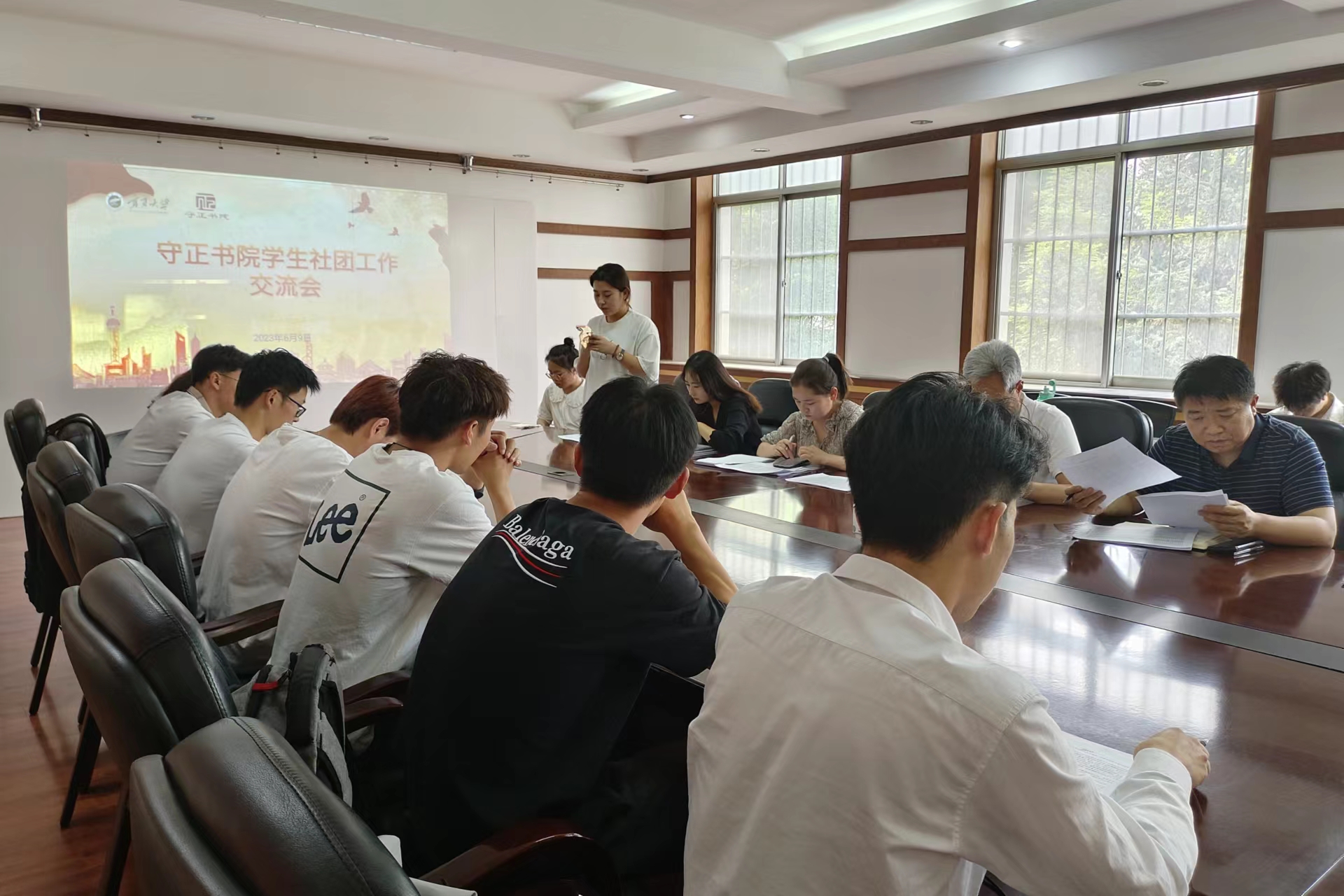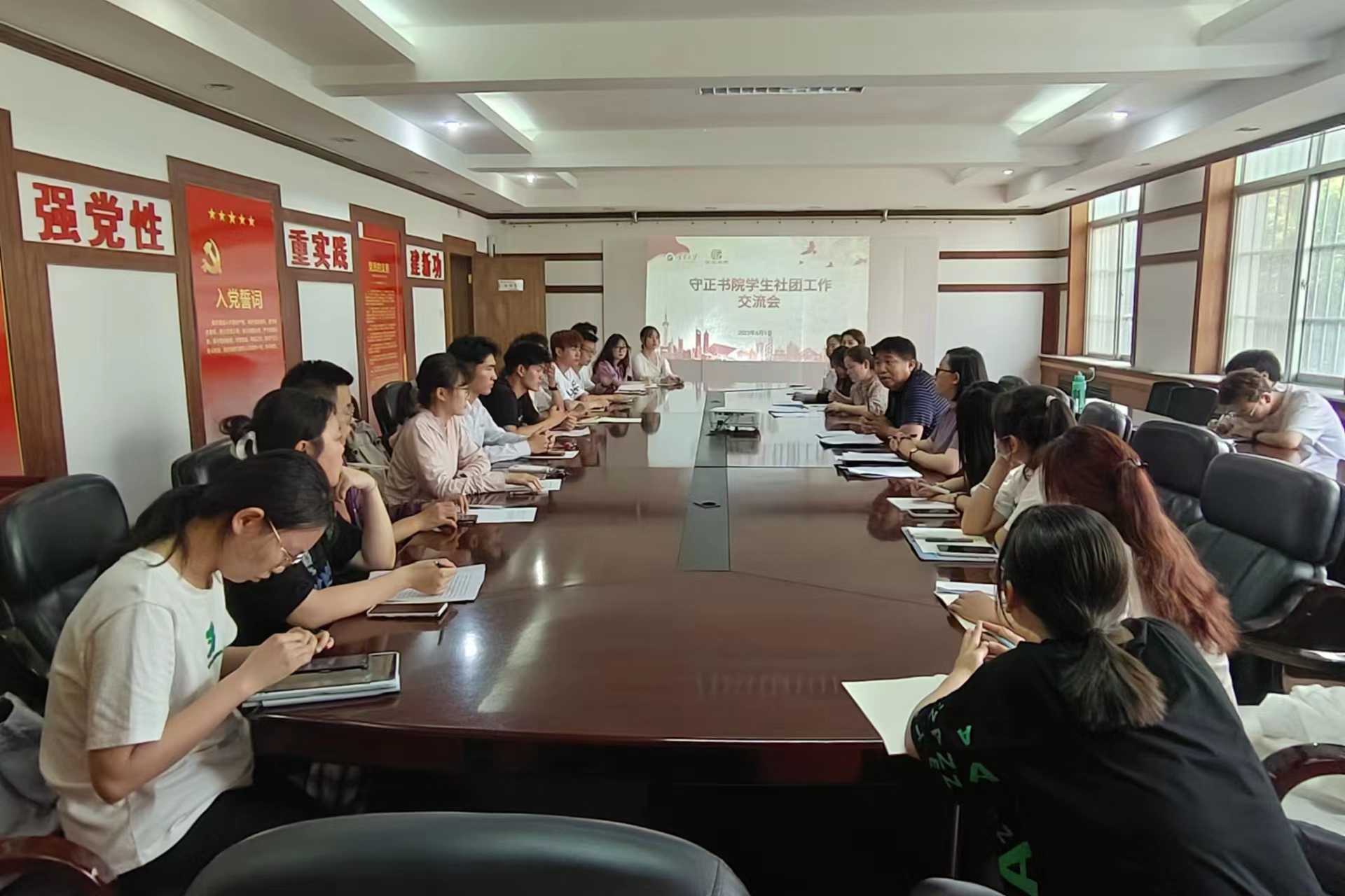 【澳门十大信誉网赌大全新闻中心讯 守正书院】为深入学习贯彻习近平新时代中国特色社会主义思想,充分发挥学生社团育人功能和加强学生社团管理,6月9日下午,守正书院在德言楼309会议室召开学生社团工作交流会。书院党委副书记赵永军、何文栋,团委负责老师陶雪梅、余晓玲及各社团负责人参加本次会议。