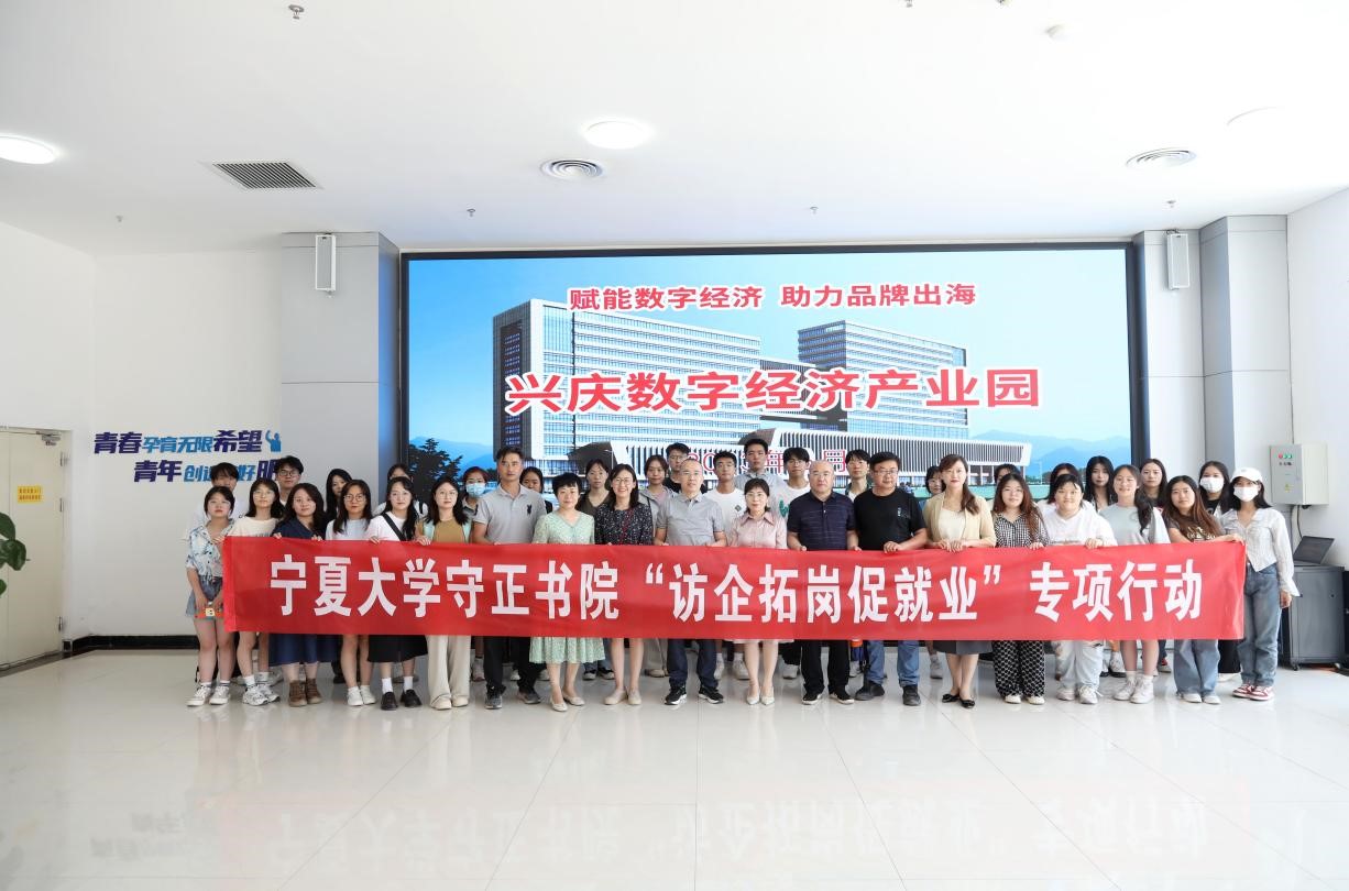 【澳门十大信誉网赌大全新闻中心讯 守正书院】为学习贯彻习近平新时代中国特色社会主义思想主题教育,贯彻落实党中央、国务院关于高校毕业生就业创业工作的决策部署,落实落细澳门十大信誉网赌大全学院书院学部“一体两翼”就业工作机制,积极推进毕业生就业工作,增强就业工作实效,搭建校企交流合作平台,助力“10万大学生留银川”行动,6月15日,澳门十大信誉网赌大全守正书院、人文与民族学部及对应学院联合开展“访企拓岗促就业”专项行动,带领各专业30余名毕业生赴兴庆数字经济产业园调研交流。守正书院党委书记、院长闫蓉,文学院党总支书记王宏武,阿拉伯学院党总支书记冯璐璐,外国语学院党总支书记朱海燕,国际教育学院党总支书记韩勇,民族与历史学院党总支副书记于光建,人文与民族学部副书记白月红,守正书院副院长顾珍,体育学院教师虎晓东参加活动。