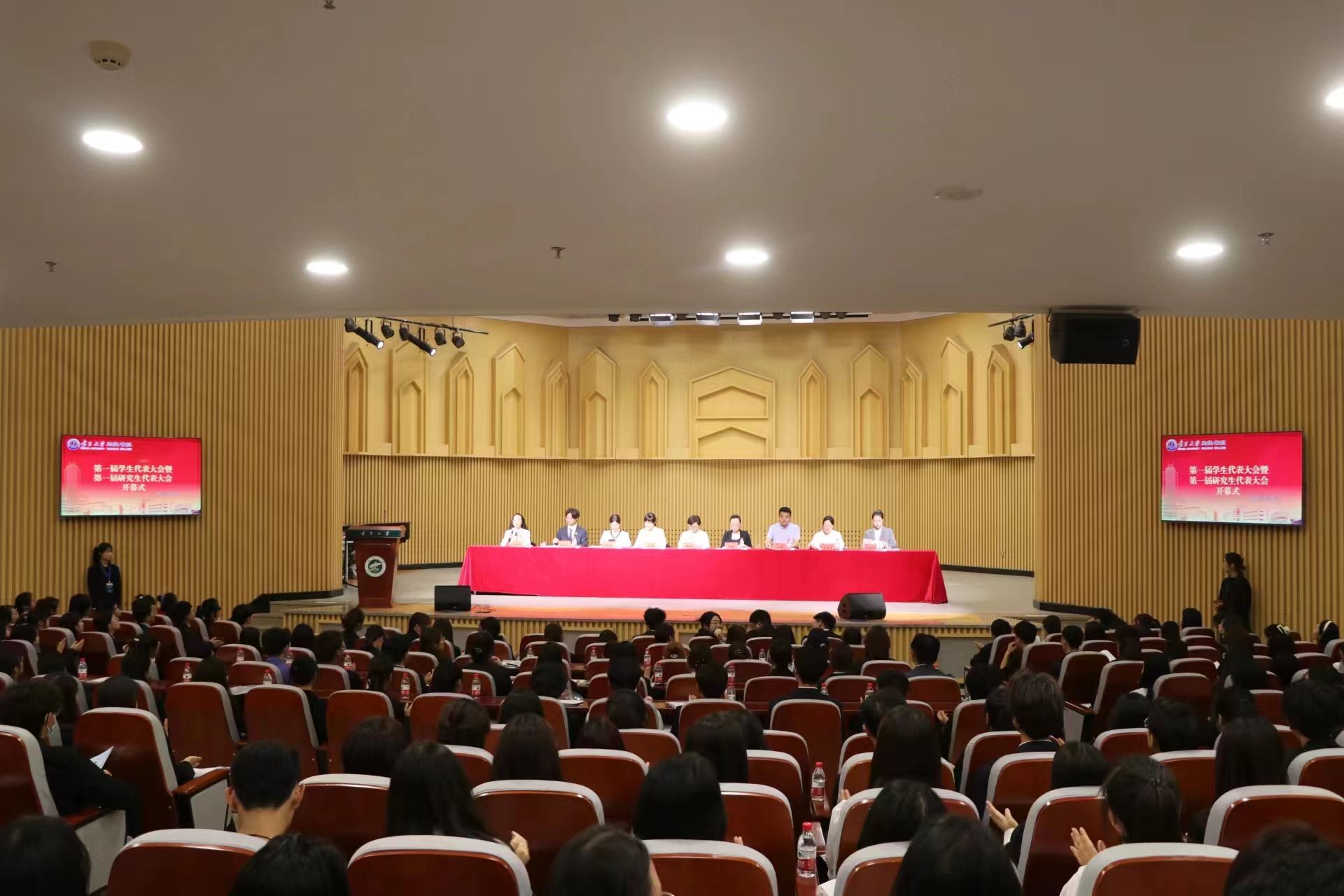 在激昂雄浑的校歌声中,尚德书院第一次学生暨研究生代表大会胜利闭幕。