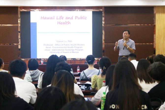 鲁元安教授从夏威夷的地理位置、产业结构和气候环境等方面带领同学们领略了夏威夷的风土人情,并简要介绍了夏威夷大学公共卫生专业教育及国际交流情况,并在此基础上进一步讲解了夏威夷本土气候特点和公共卫生发展特色。他讲到,在深入自己研究方向的同时,各位师生要更多关注学界业界的前沿,多查阅相关文献,积极参与专业领域内的国际交流、学习与合作。讲座深入浅出,让各位师生对于美国夏威夷公共卫生领域有了更深刻和全面的认识,给师生们的未来学习和科研提供更多启发。