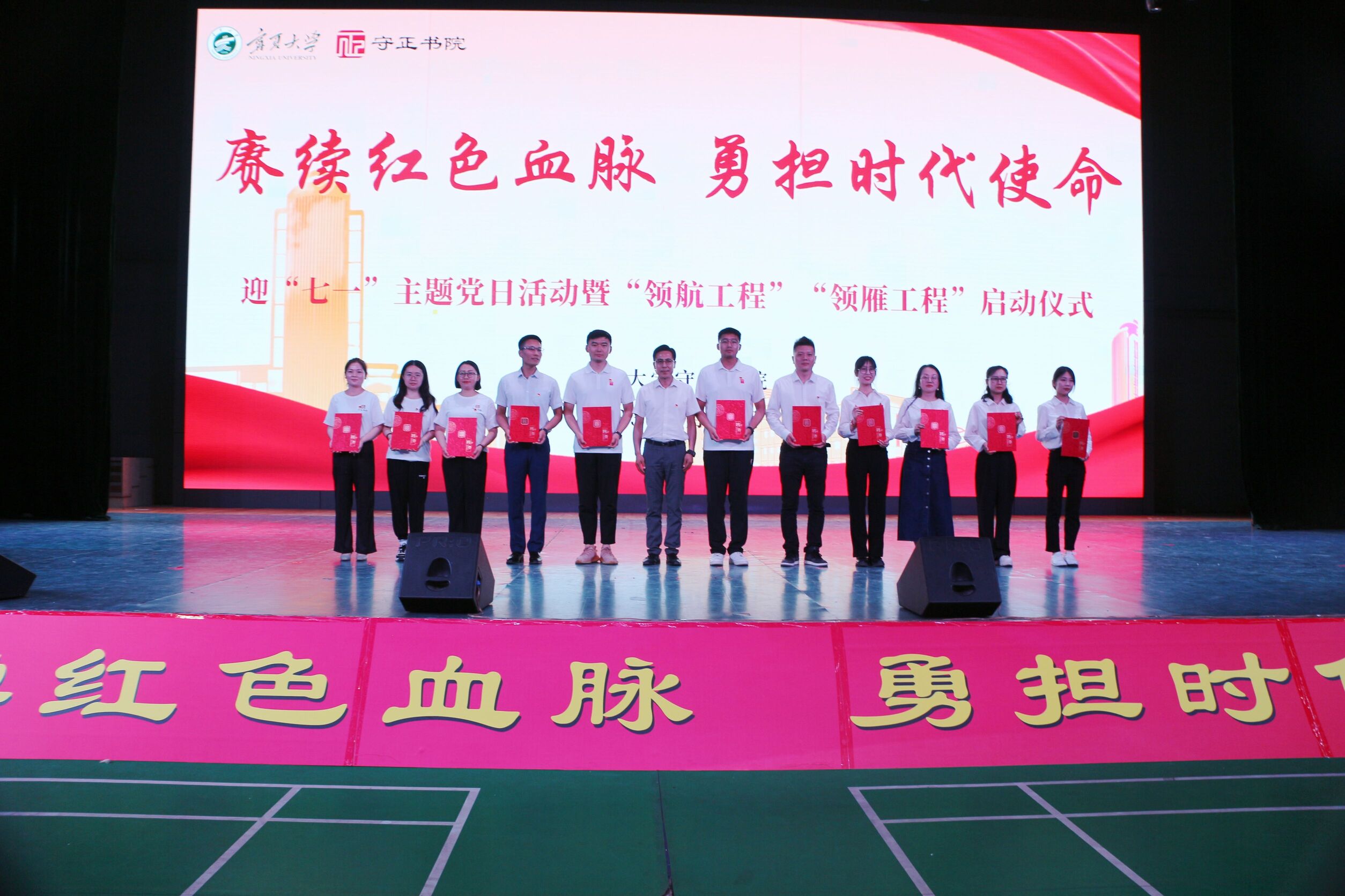 【澳门十大信誉网赌大全新闻中心讯 守正书院/文 学生记者:文轩轩 占婷瑛 守正书院/图】为深入学习贯彻习近平新时代中国特色社会主义思想,持续加强青年思想政治教育在青年工作中的核心地位,6月21日晚,守正书院在文萃校区国家大学生文化素质教育基地举办了“赓续红色血脉 勇担时代使命”——迎“七一”主题党日活动暨“领航工程”“领雁工程”启动仪式。校党委常委、副校长黄河,澳门十大信誉网赌大全原副校长刘世俊,党委常委、组织部部长张立杰,党委常委、宣传部部长高永兴出席活动。守正书院党委书记、院长闫蓉主持启动仪式。