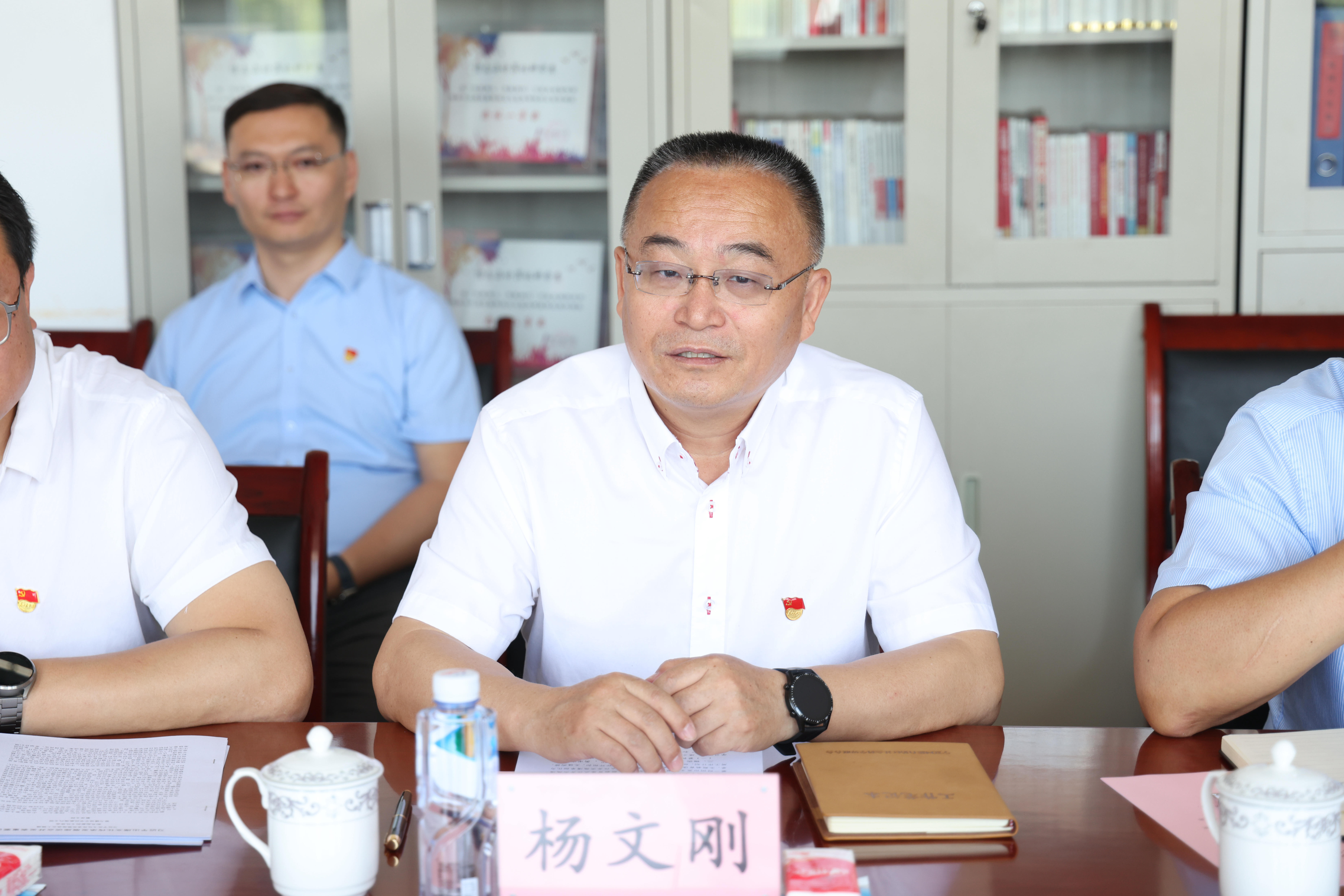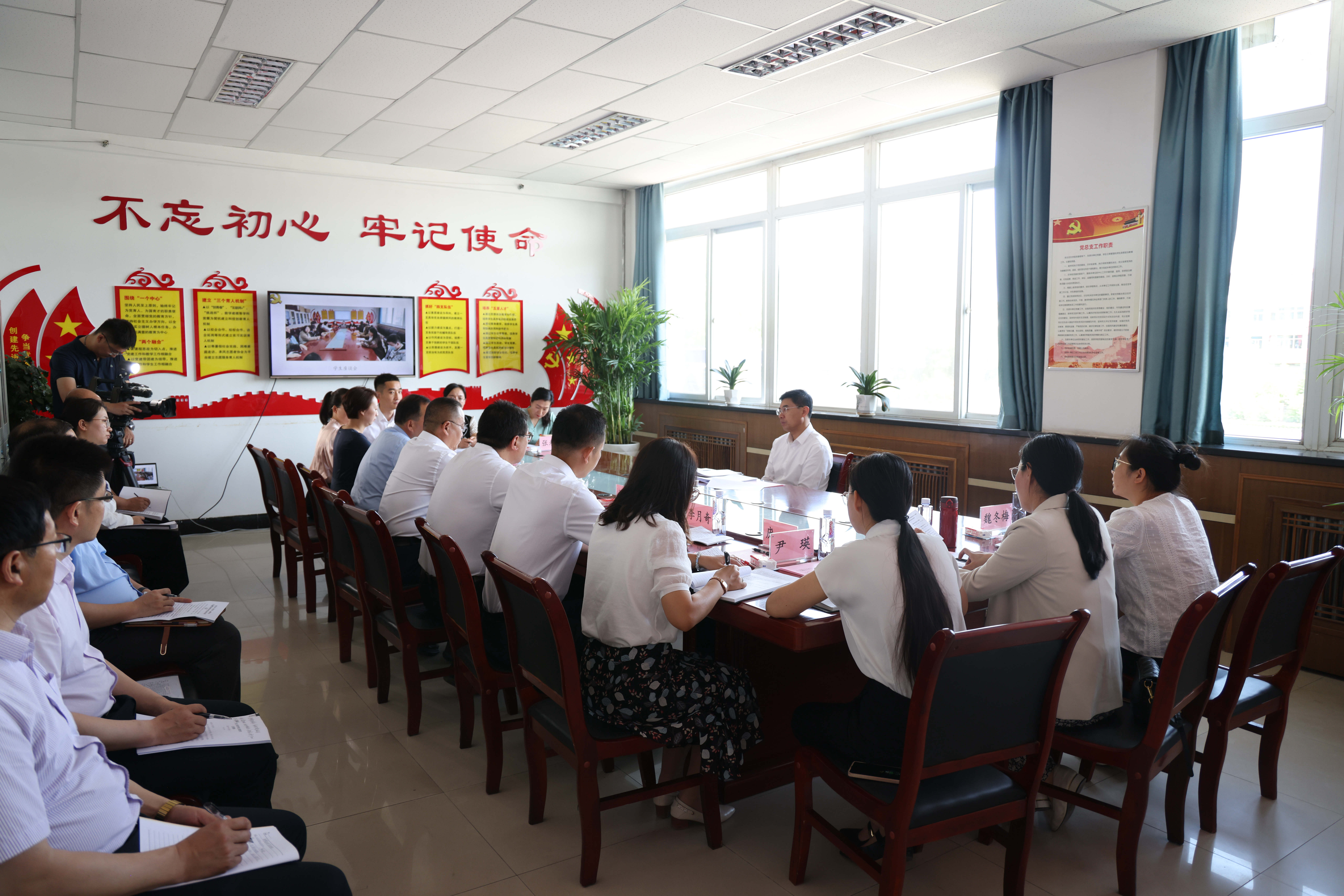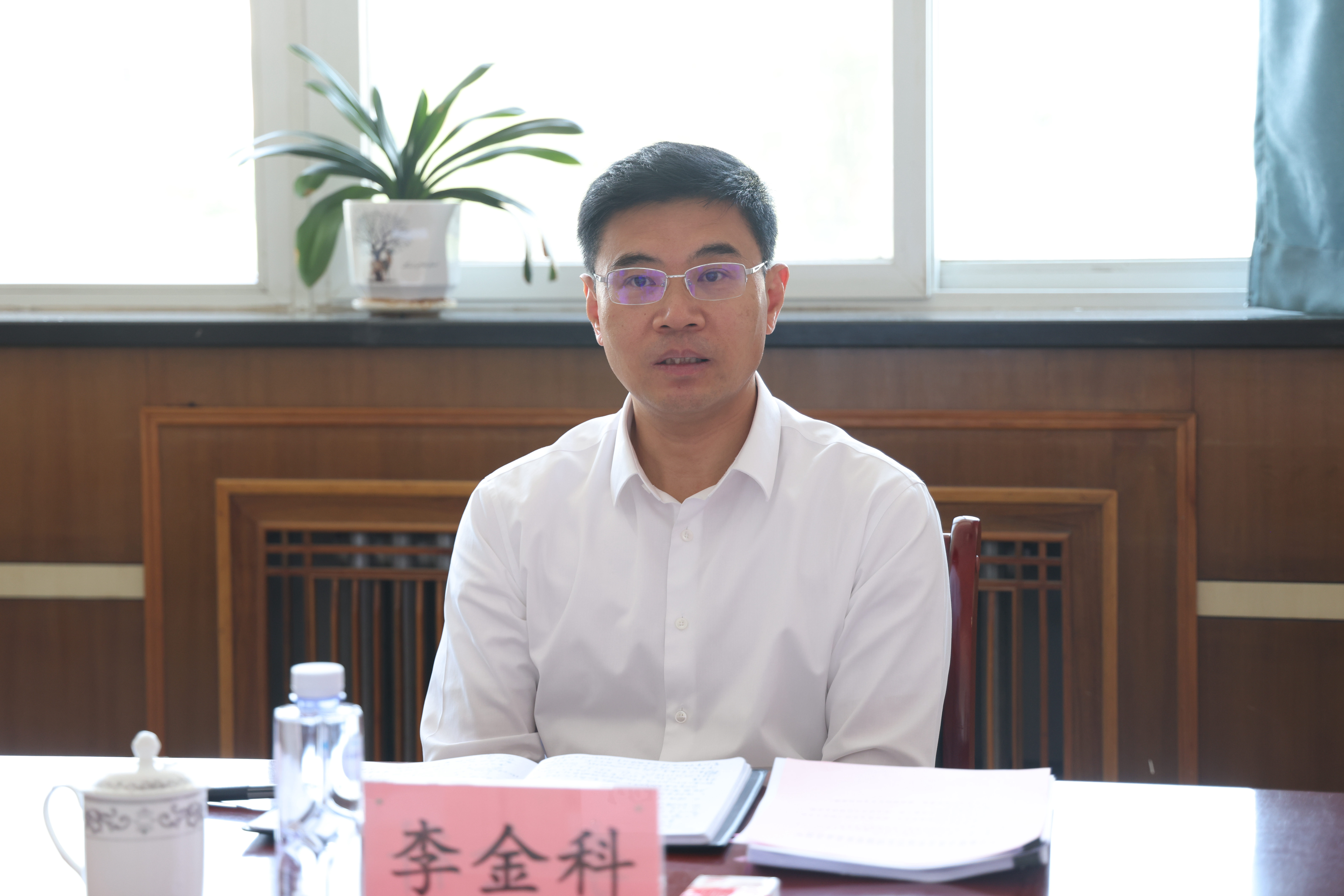 在联系的信息与计算机科学系教工第一党支部党员活动室,李金科听取了杨文刚就学院主题教育开展情况的汇报及信息与计算机科学系教工第一党支部书记韩婷结合支部主题教育开展情况的汇报,与教师进行了深入交流,并讲党课。