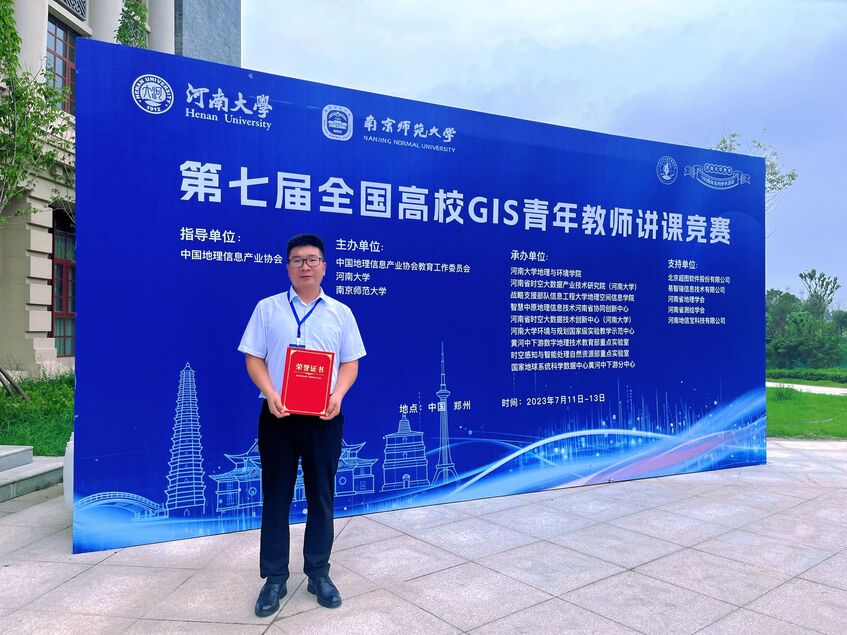 【澳门十大信誉网赌大全新闻中心讯 地理科学与规划学院】7月11-13日,第七届全国高校GIS青年教师讲课竞赛在河南大学(郑州校区)成功举办。我院遥感与地理信息工程系教师李吉龙荣获一等奖。