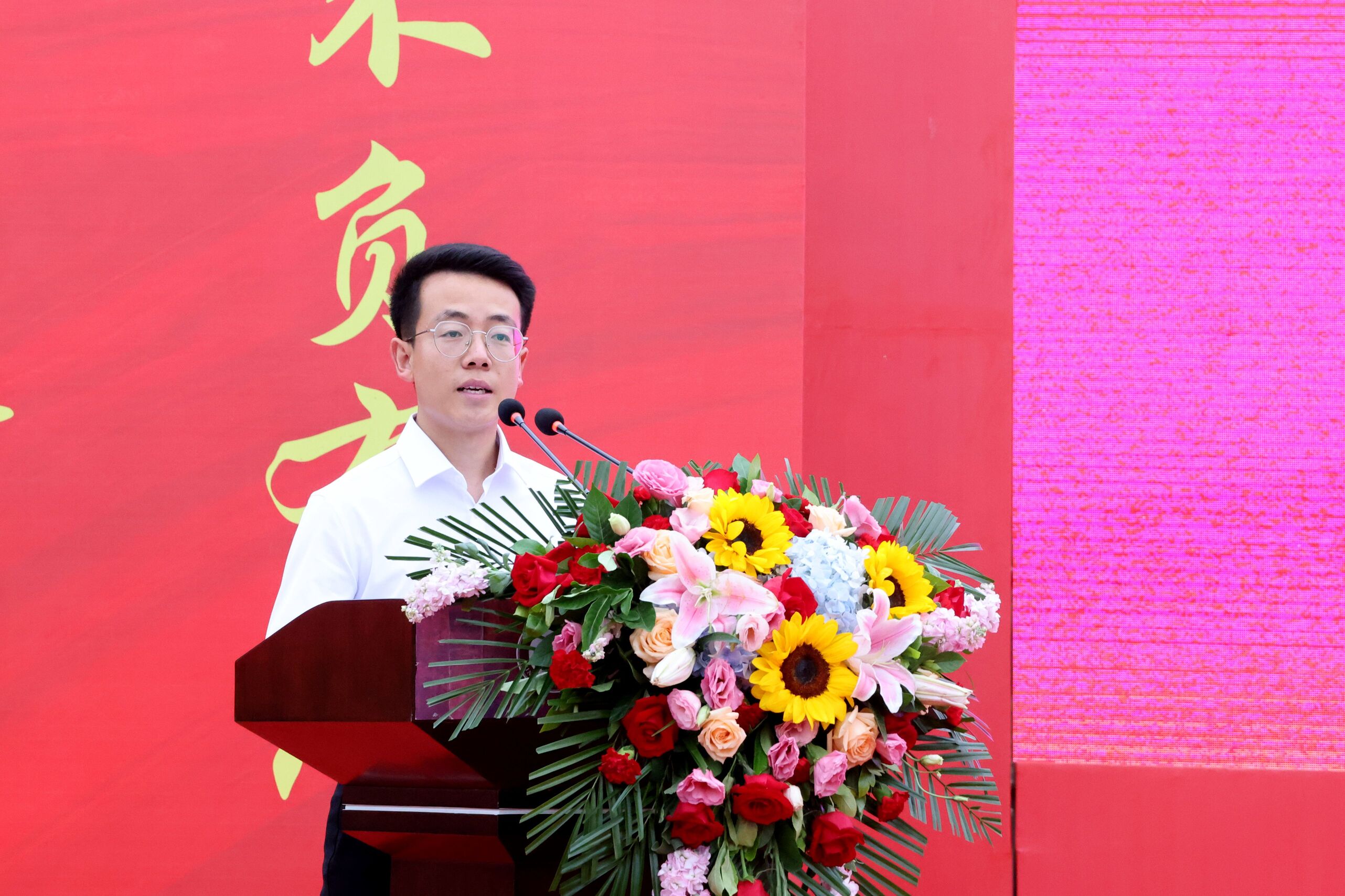 艺术与体育系音乐学专业2023级新生鲜伊辉作为新生代表发言。他结合自己对音乐的执着与热爱,分享了自己对于大学生活的思考和规划,并与各位2023级同学共勉,坚定理想、勇于担当,能咽下苦楚、还甘于奋斗,做一个心中有梦、眼里有光的“新华青年”,在风华正茂的年纪书写青春的新篇章。最后在第39个教师节来临之际,向关心关怀同学们、躬耕讲坛的各位老师送上最真挚的祝福!
