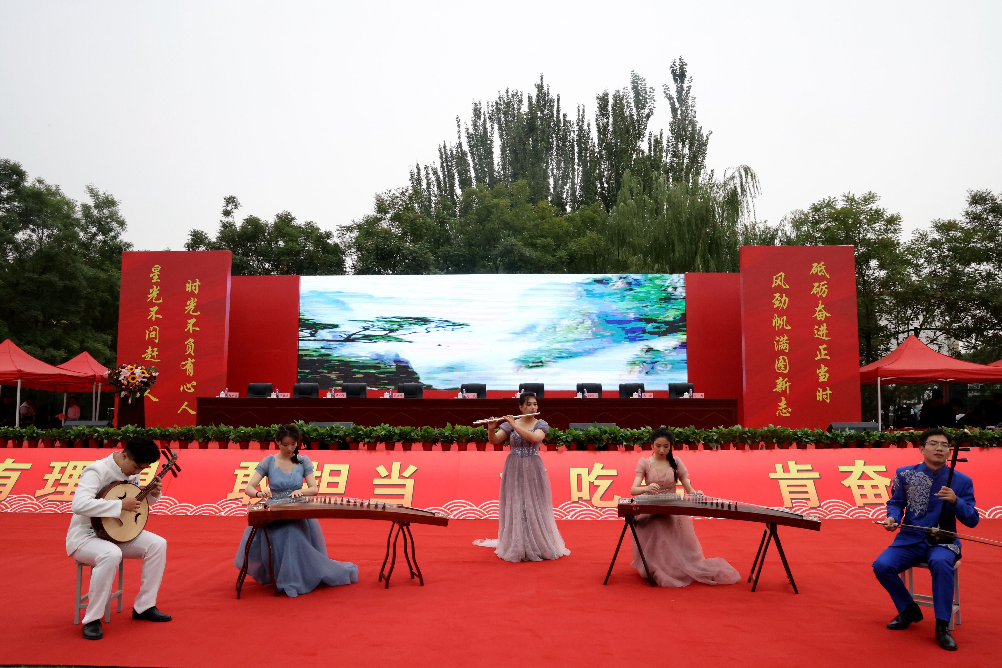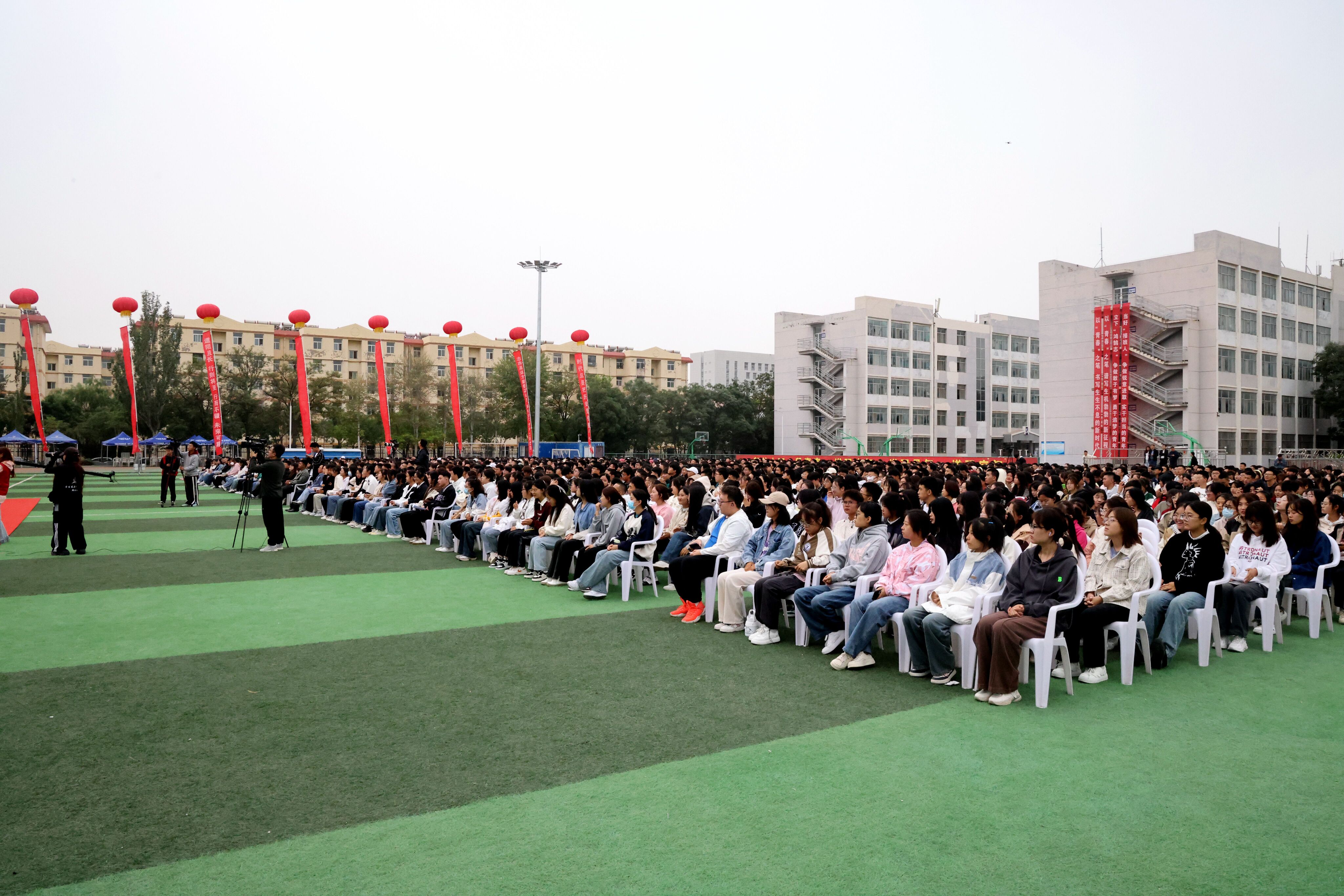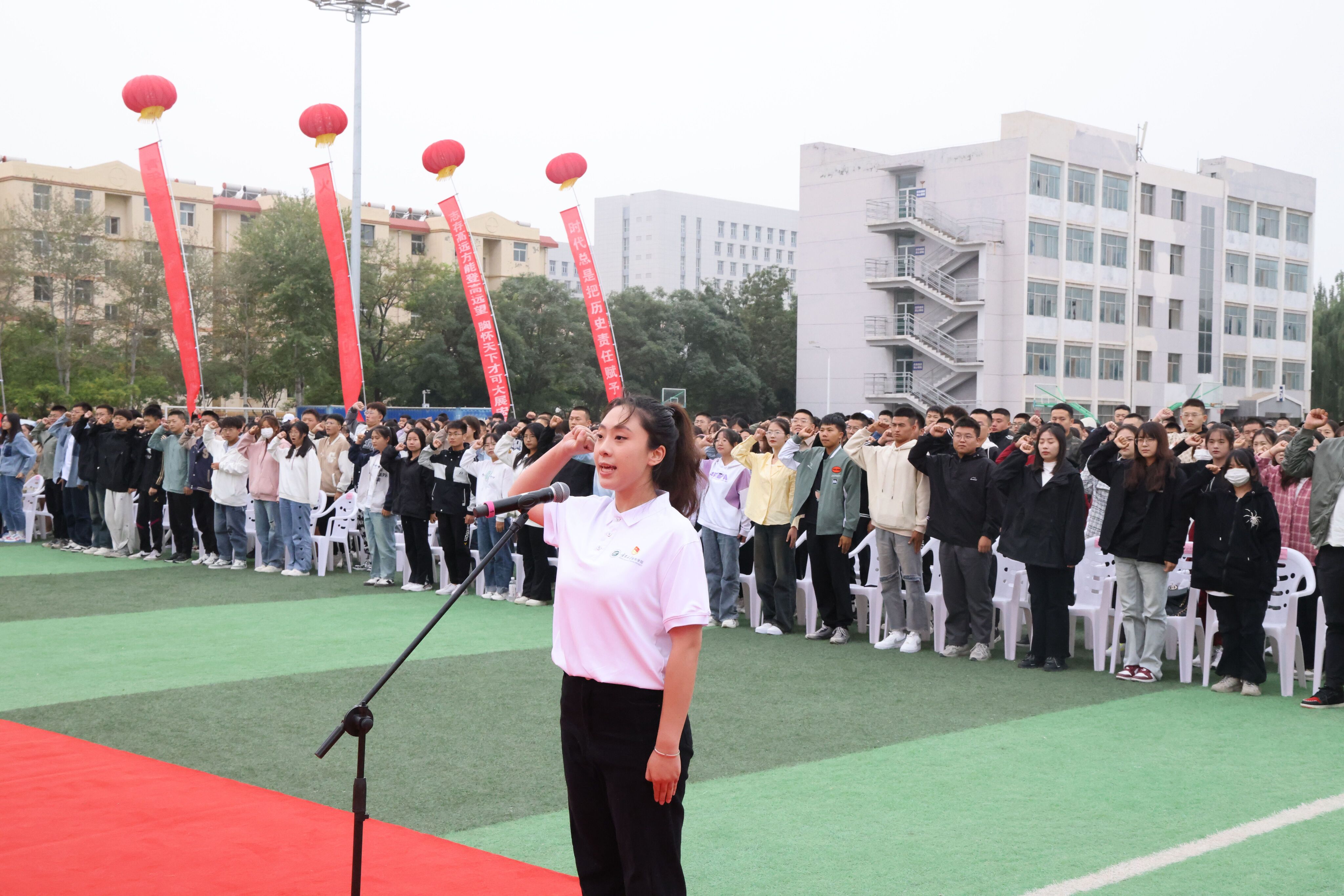 典礼开始前,学院2023级音乐专业新生,演奏《三月桃花雨》,操场上新华学子以最青春的姿态、最昂扬的朝气和最饱满的热情,展现出当代青年勇立潮头、积极向上的青春风采。
