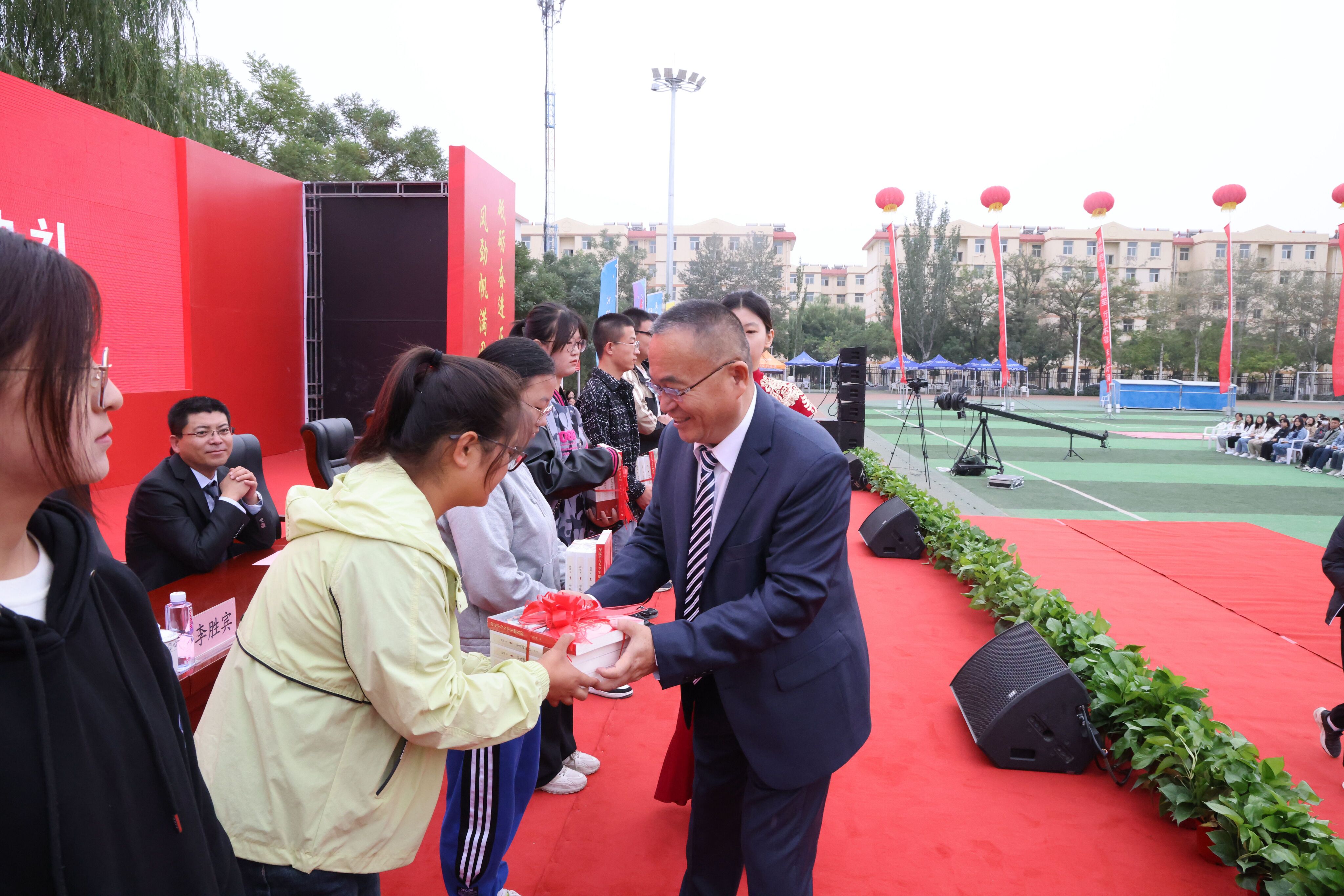 杨文刚为2023级新生代表赠书。希望同学们能够与书结缘,以书为友,静下心来刻苦学习,在学习中不断汲取智慧与力量,努力练好人生和事业的基本功。