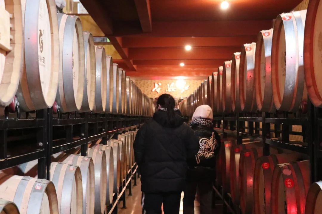 在红寺堡东方裕兴酒庄,同学们参观了酒庄的陈酿,据了解酒庄不仅带动了当地葡萄酒产业的快速发展,还促进了旅游业的繁荣。在未来,酒庄将继续秉持绿色、有机的发展理念,提升葡萄酒品质,为红寺堡的经济发展蓄力。