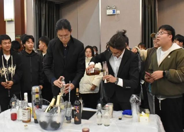 各类美酒在同学们的舌尖绽放馥郁,风味无穷。美酒将同学们相聚于此,正如美好的时光在酒酿中盛开,独特的韵味将伴我们同行,留存珍贵的回忆。