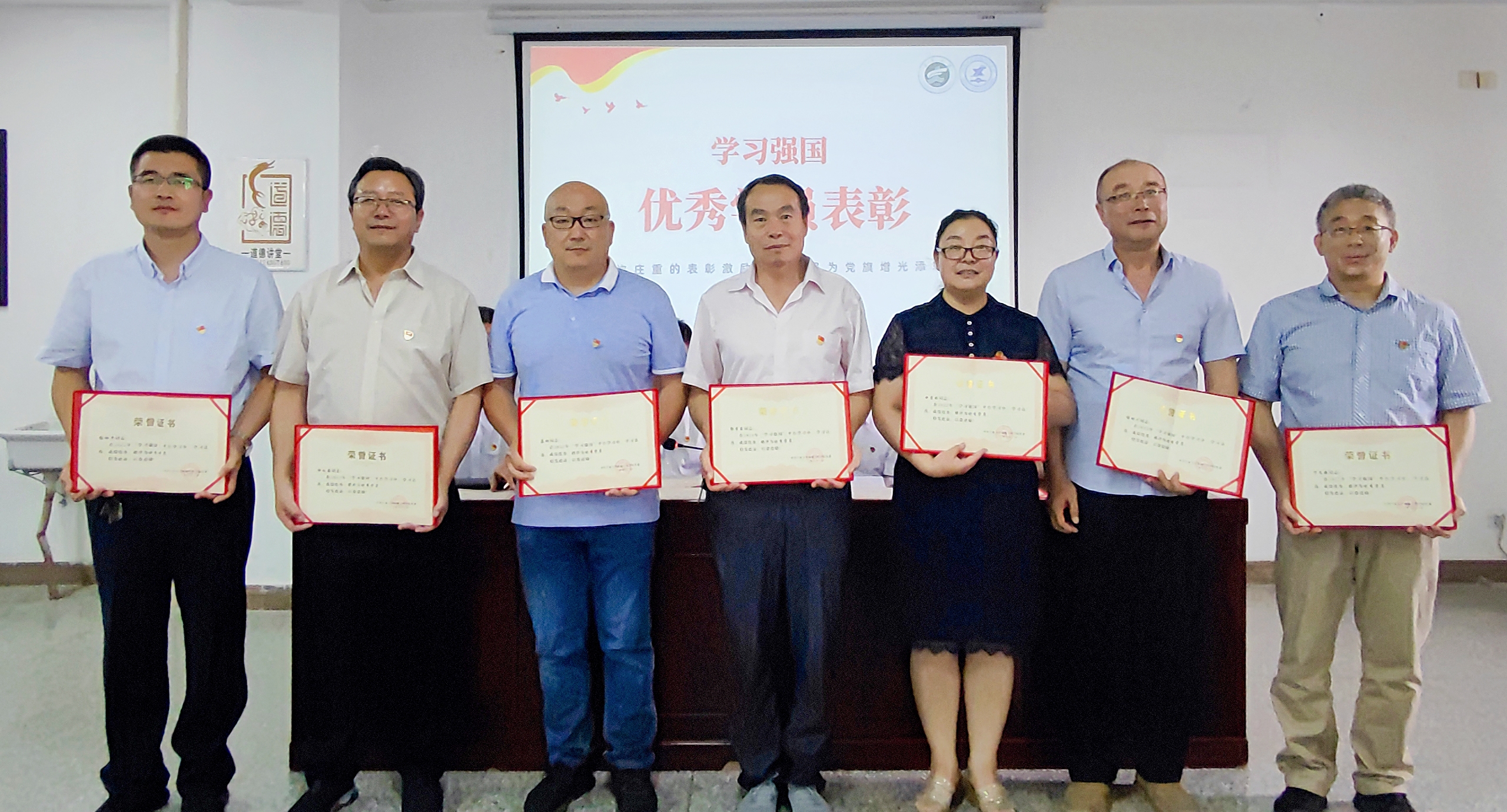 张波宣读学院2022年利用“学习强国”平台加强学习,提升理论素养和综合能力排名在前的师生党员决定后,参会学院领导现场为优秀学员颁奖。