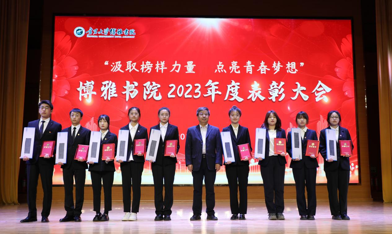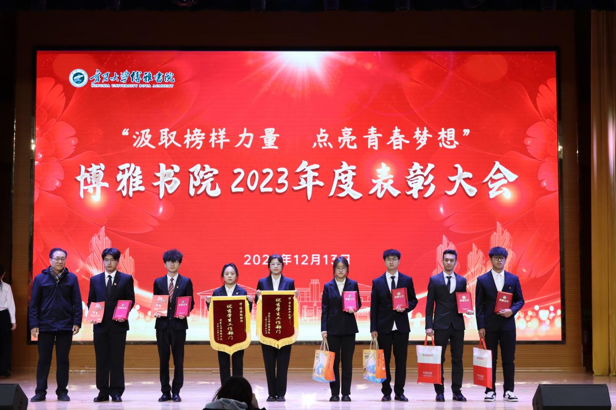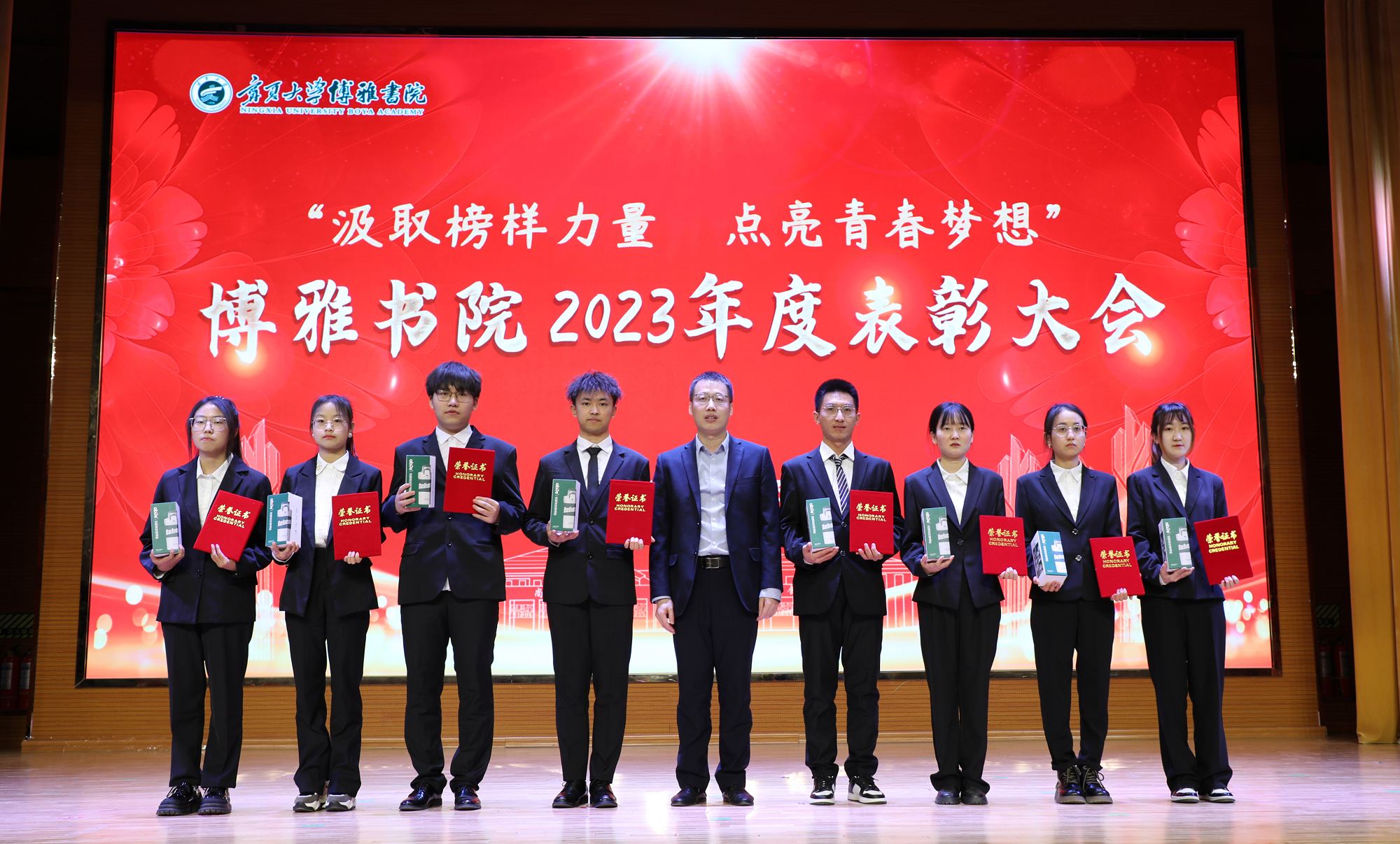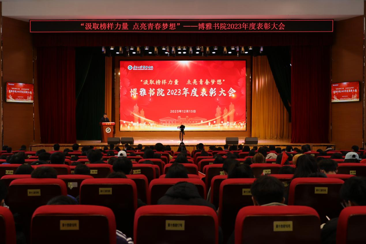 【澳门十大信誉网赌大全新闻中心讯 博雅书院】为深入开展学习贯彻习近平新时代中国特色社会主义思想主题教育,全面贯彻落实党的二十大精神,落实立德树人根本任务,发挥榜样示范带动作用,积极营造良好学风氛围,12月13日,博雅书院2023年度“汲取榜样力量点亮青春梦想”表彰大会在中卫校区应理报告厅隆重举办。校党委常委、副校长黄河,团委(国家大学生文化素质教育基地办公室)书记(主任)肖功国,保卫处长张守荣,党委学生工作部(学生处)副部长(副处长)杨亚珺,前沿交叉学院党总支副书记、执行院长王磊,党总支副书记贾随生,博雅书院党委书记张翼,党委副书记、院长李举,党委副书记苏军峰,副院长聂义民、李尚平、李治中出席本次活动,书院各级学生代表参加大会。本次大会由博雅书院副院长安瑞平主持。
