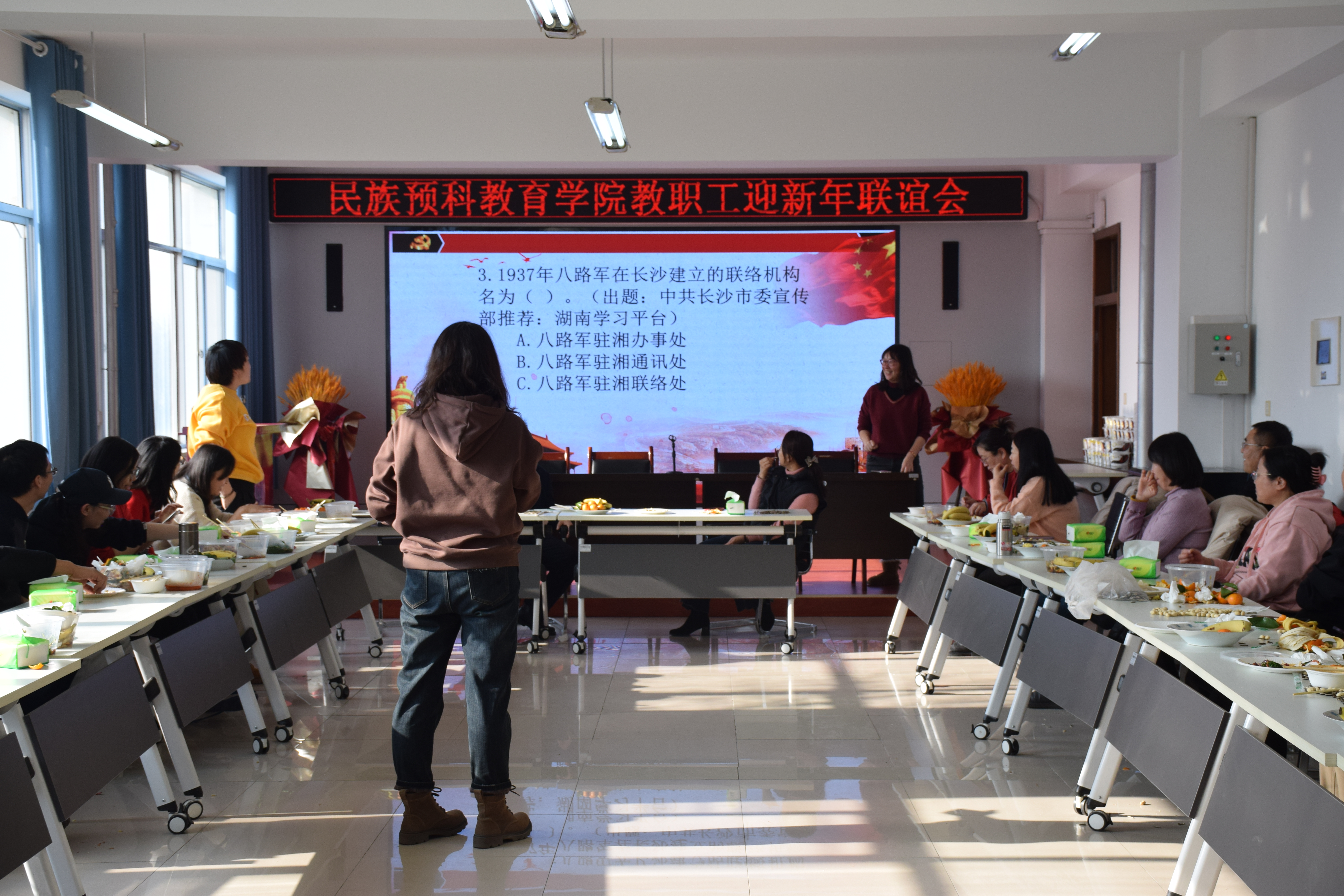 【澳门十大信誉网赌大全新闻中心讯 民族预科教育学院】在元旦即将到来之际,为丰富教职工文化生活,增强教职工凝聚力和团结力,12月27日中午,民族预科教育学院教职工迎新年联欢会于田家炳楼214会议室开展。学院党总支书记倪彬、院长马小玲、副院长马亚琳、陈婕以及全体教职工参加此次活动。