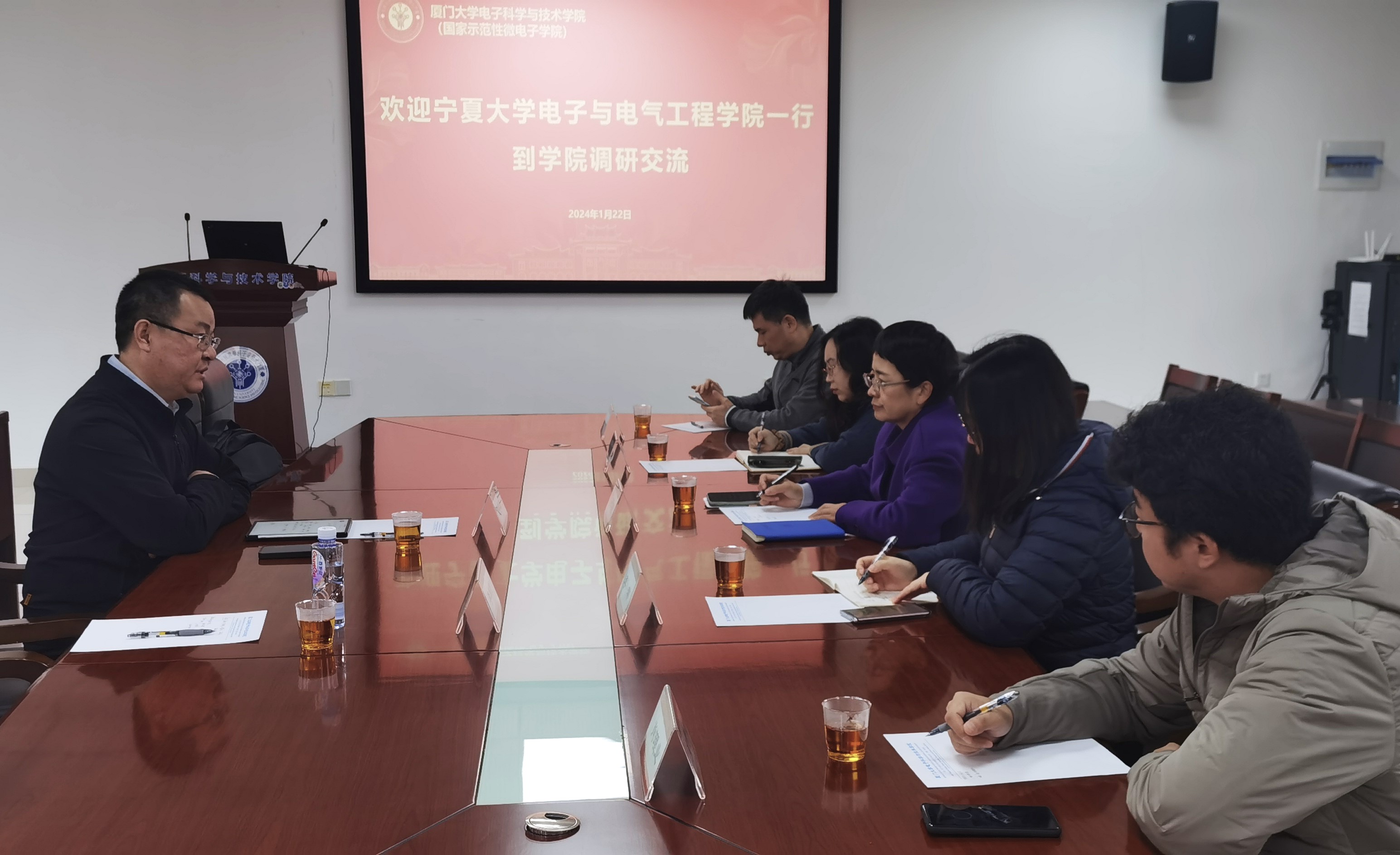 走访交流中,厦门大学信息学院、电子科学与技术学院和航空航天学院的领导分别介绍了学院的建院历史、学科建设、师资队伍、科学研究、人才培养、产学研合作及优势特色,并表达了在人才提供、人才培养、科研合作方面的合作共识。孙学宏介绍了自治区和学校的人才政策,并从学院学科建设、人才培养、科学研究和师资队伍建设等方面介绍了学院的基本情况以及学院发展及亟待解决的人才问题,他表示,此行目的旨在调研厦门大学相关学院的工作经验,增进双方交流合作,进一步加强学院师资队伍建设、提升科研服务能力和人才培养质量,推动学院高质量发展。