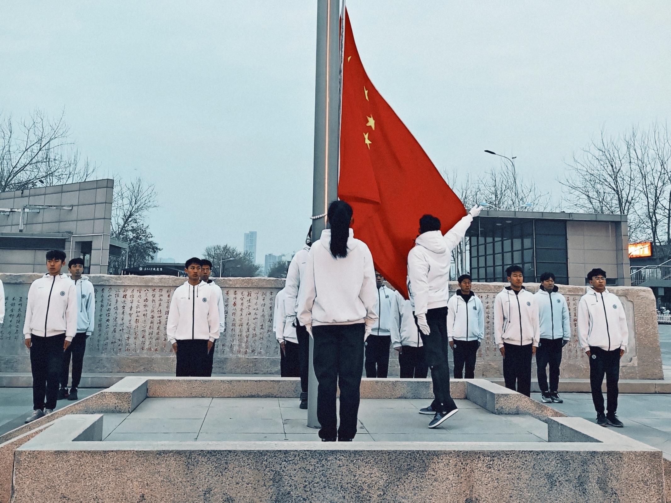 【澳门十大信誉网赌大全新闻中心讯 守正书院】新学期开启新征程,新目标激发新动力。3月4日清晨,守正书院在贺兰山校区德勤楼前举行以“弘扬雷锋精神 践行使命担当”为主题的庆祝新中国成立75周年——学雷锋纪念日开学升国旗仪式。书院领导班子成员、全体辅导员及各年级学生代表参加升国旗仪式。仪式由书院党委副书记何文栋主持。
