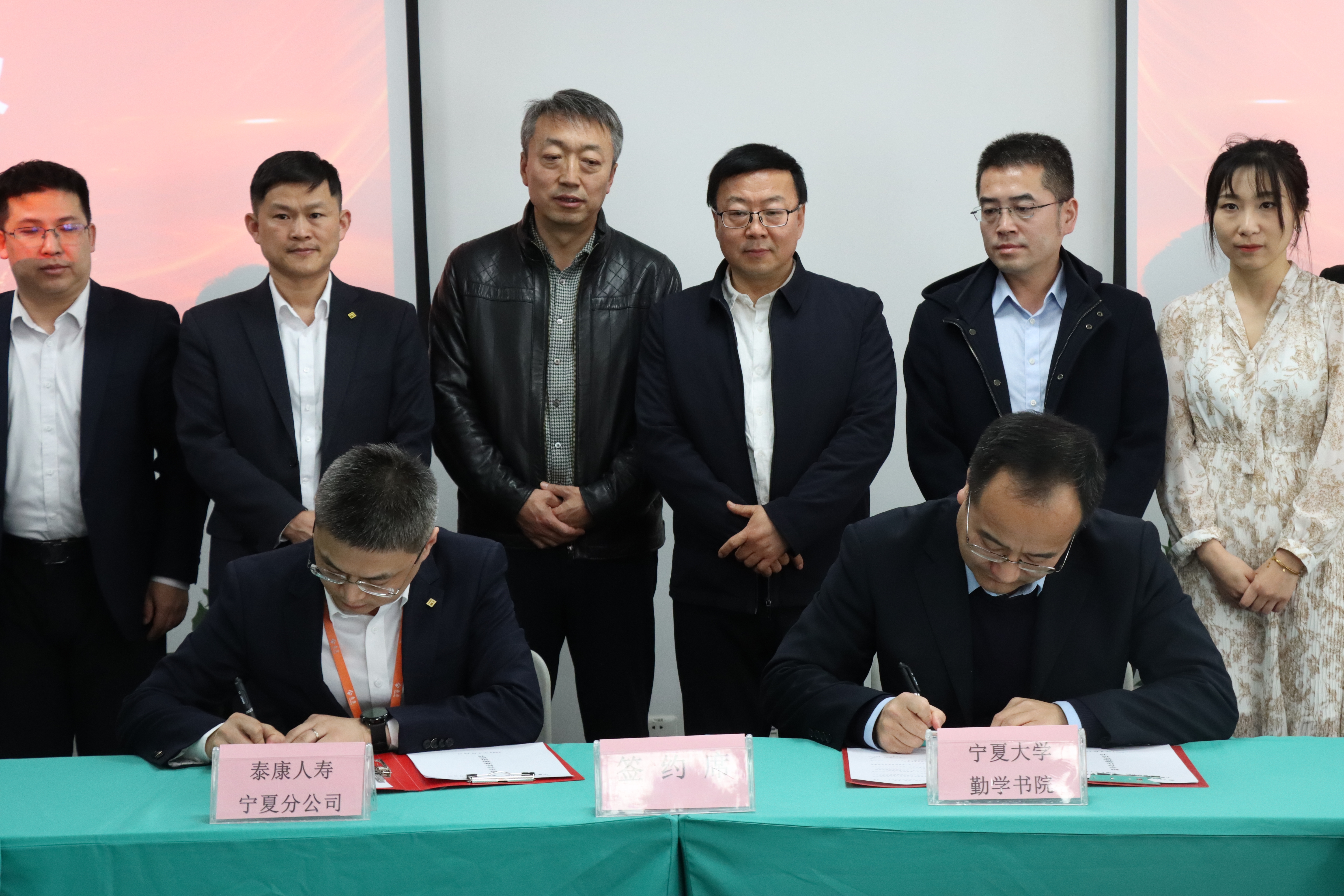 勤学书院与泰康人寿宁夏分公司、中海宏洋(银川)有限公司分别签订了“校企合作”协议。同时,聘任仇当、中海苏丁奕为勤学书院特聘导师,黄河为仇当、苏丁奕颁发特聘导师聘书。