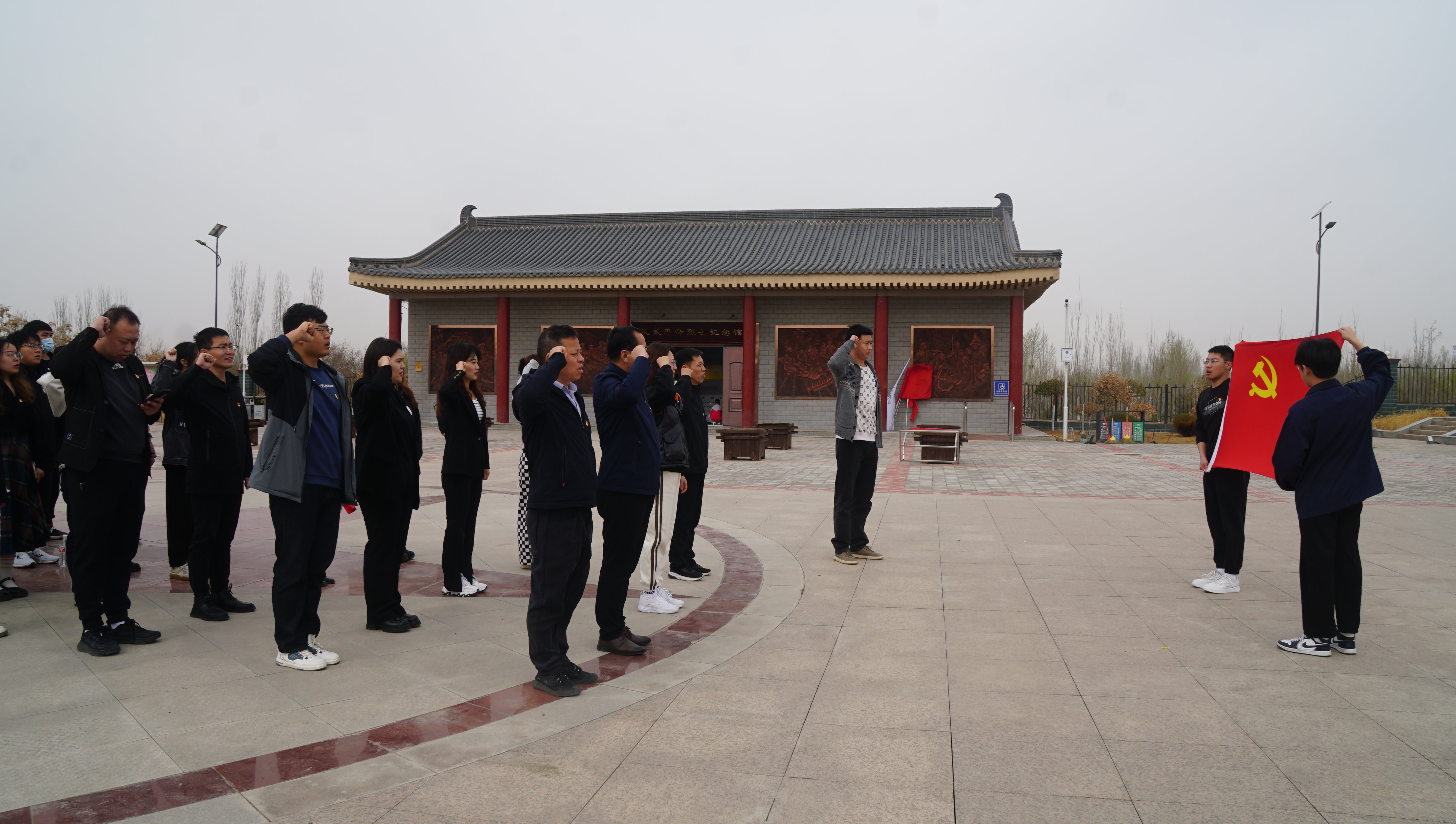在灵武市烈士陵园革命烈士纪念碑前,书院师生党员肃立默哀,怀着无比崇敬的心情向烈士敬献花篮花束,以此表达对烈士的崇高敬意和深切悼念。面对庄严的党旗,大家紧握右拳,高声宣誓,铮铮誓言响彻纪念碑广场。随后师生党员参观了灵武市烈士纪念馆,在工作人员的详细讲解下,师生党员们共同聆听了一堂生动而深刻的“红色党课”。