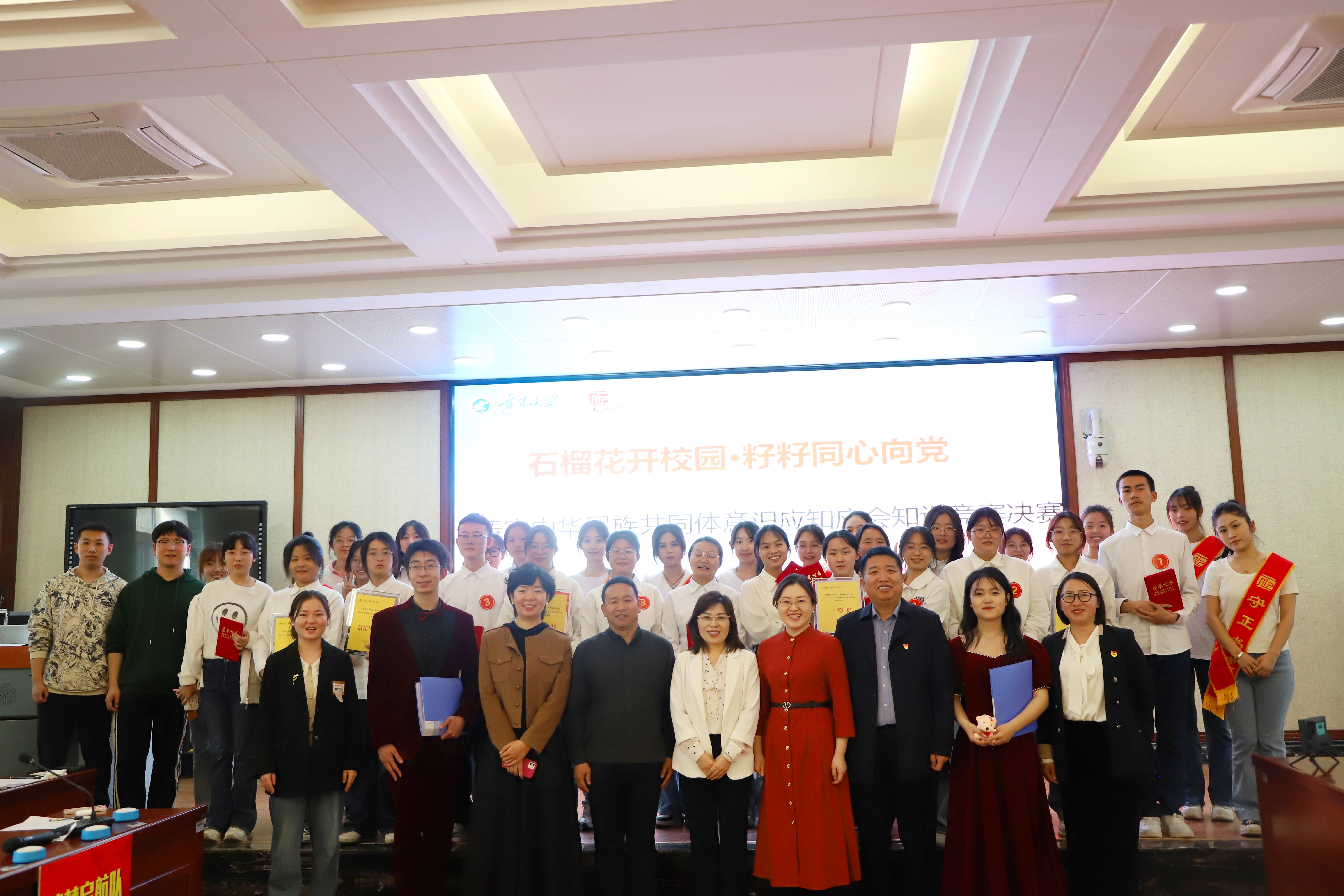 本次比赛由石榴花开队、青春向党队、筑梦启航队、籽籽同心队四支队伍参加,通过“胸有成竹”“同心协力”“谁与争锋”“最后一搏”“一战到底”五个环节展开比拼。现场还设置了观众抢答环节,气氛热烈,观众踊跃作答。