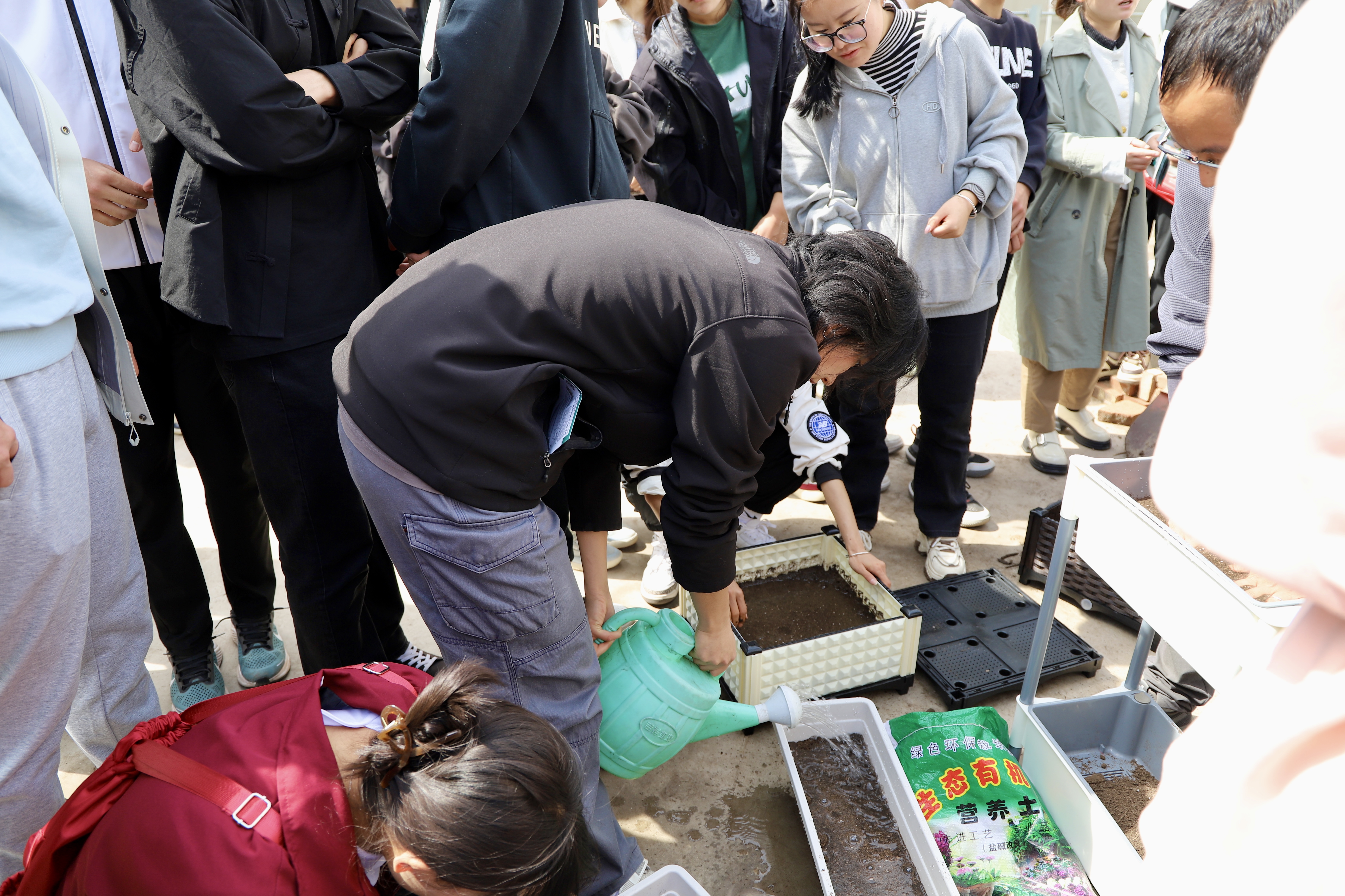 “劳动教育是立德树人的重要举措,是人才培养‘五育并举’的重要环节,通过本次活动,希望同学们在劳动中能够塑造健全人格,磨炼顽强意志,锤炼高尚品格,培养团队协作能力,在劳动实践中得到成长。”守正书院党委书记、院长闫蓉说。书院师生跟随着农学院园林系主任靳磊、农学院硕士生导师程国新的脚步到达了实践基地。“劳动教育实践的实效,离不开深度的实践指导。”“去除植物的顶芽可以让侧枝更好地生长,不同的植物在不同的地区,它的长势与外部的各种条件有关……”农学院园林系主任靳磊介绍。在他的耐心指导下,同学们展现出极高的热情和积极性。他们分工协作,积极投入到劳动的热潮中,无论是播撒种子,还是浇水灌溉,每一项工作都在有条不紊地进行。