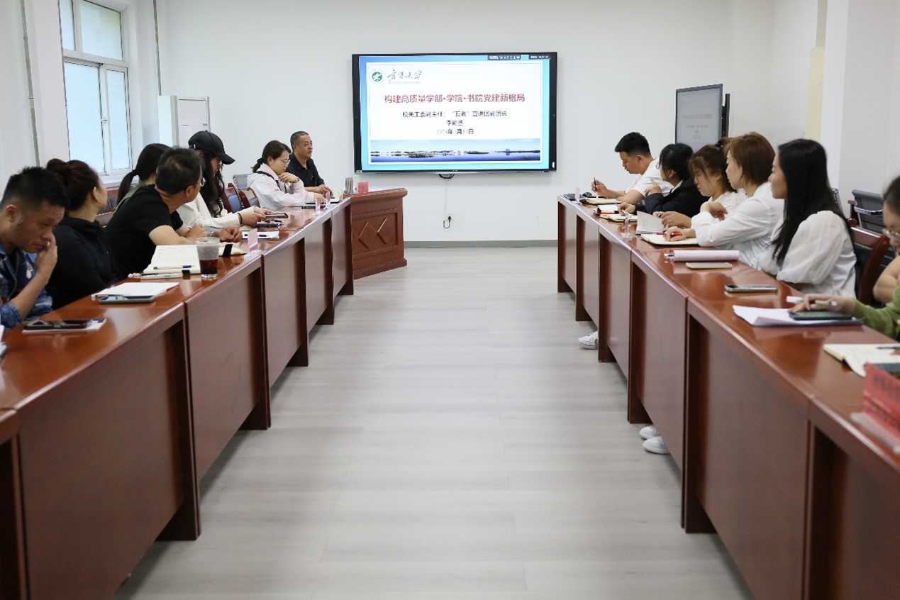李嗣丞围绕“构建高质量学部·学院·书院党建新格局”主题,从学校党建工作定位、优秀党员标准、规范党支部基本工作制度、发展党员、加强学习全面提升工作水平等方面深入浅出地为学部党建工作把脉问诊。大家认真聆听、学有所思,明确了下一步党建工作的重点和方向。