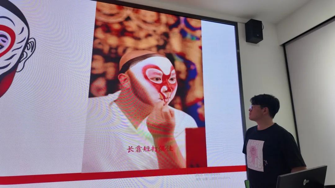 王亚楠为大家讲解京剧脸谱的历史沿革及绘制方法。“蓝脸的窦尔敦盗御马,红脸的关公战长沙,黄脸的典韦,白脸的曹操,黑脸的张飞叫喳喳。”他逐句讲解歌曲《说唱脸谱》,大家边听歌边感受剧中人物特征,启发绘画灵感。王亚楠介绍了脸谱的人物形象、分类、结构等,强调京剧脸谱以程式化、象征性的抽象表现为特色,将点、线、色有规律地相结合,形成各种各样的图案,表达了传统中国戏剧美学文化。他还通过视频展示脸谱的绘制过程,供同学们学习参考。