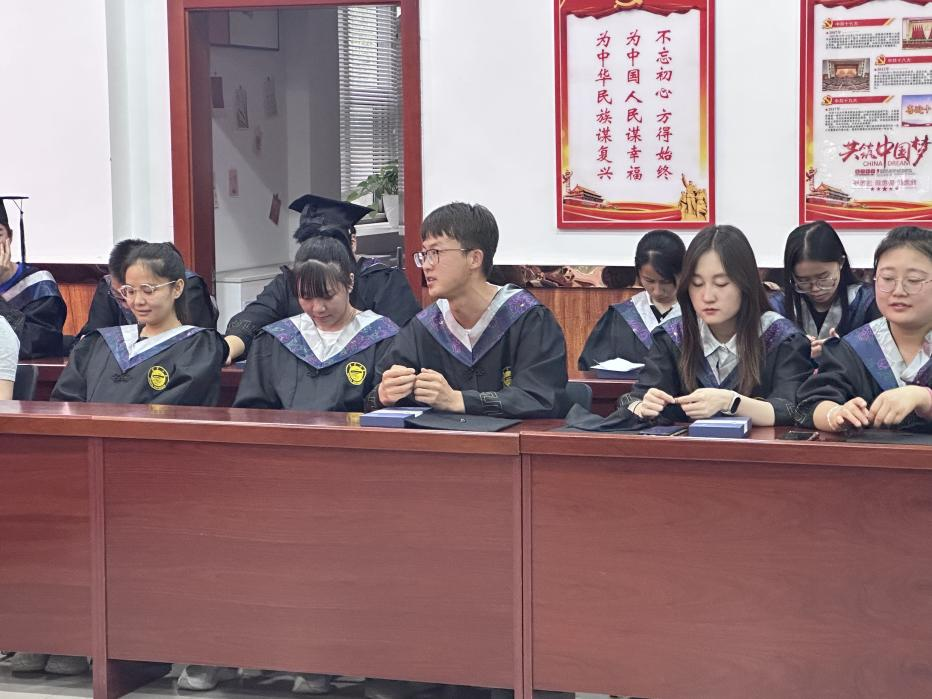 会上,领导老师们向毕业生赠送毕业礼物,表达对他们未来的美好祝愿,并鼓励毕业生们要敢于创新、敢于拼搏,不断追求自己的梦想和目标,勇敢面对未来的挑战和机遇。苏建宇从多角度与毕业生们分享成长成才历程,鼓励他们要持续学习、积极实践、常回母校。张强寄语毕业生们要满怀激情地面对未来,始终坚持梦想,保持良好心态,不断成长和进步,开启自己幸福的人生。邓光存从就业角度鼓励毕业生们要保持谦逊敬业的态度,将个人的职业规划与长远的生涯规划紧密结合,确保前行之路稳健而明智。