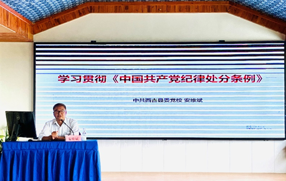 中共西吉县委党校校务委员、高级讲师安维斌作《中国共产党纪律处分条例解读及案例分析》专题讲座。他从“纪律严明是党的光荣传统和独特优势、条例的主旨要义和规定要求、学习贯彻条例增强纪律定力”三个方面,对《条例》内容修订的重要意义和主要内容进行了系统梳理和详细阐释。西吉县龙王坝村党支部副书记、高级农艺师、宁夏龙王坝乡村振兴培训学院院长焦建鹏同大家分享了《全国乡村旅游重点村、中国美丽乡村--龙王坝乡村振兴之路探索》案例。他生动讲述了昔日荒凉偏僻、山大沟深、土地贫瘠、干旱少雨的小村庄是如何在习近平新时代中国特色社会主义思想的引领下,经过较长时间的探索与实践,成功打造出了集 “旅游+康养+培训+研学”于一体的新产业新业态,并成为中国最美乡村旅游模范村。