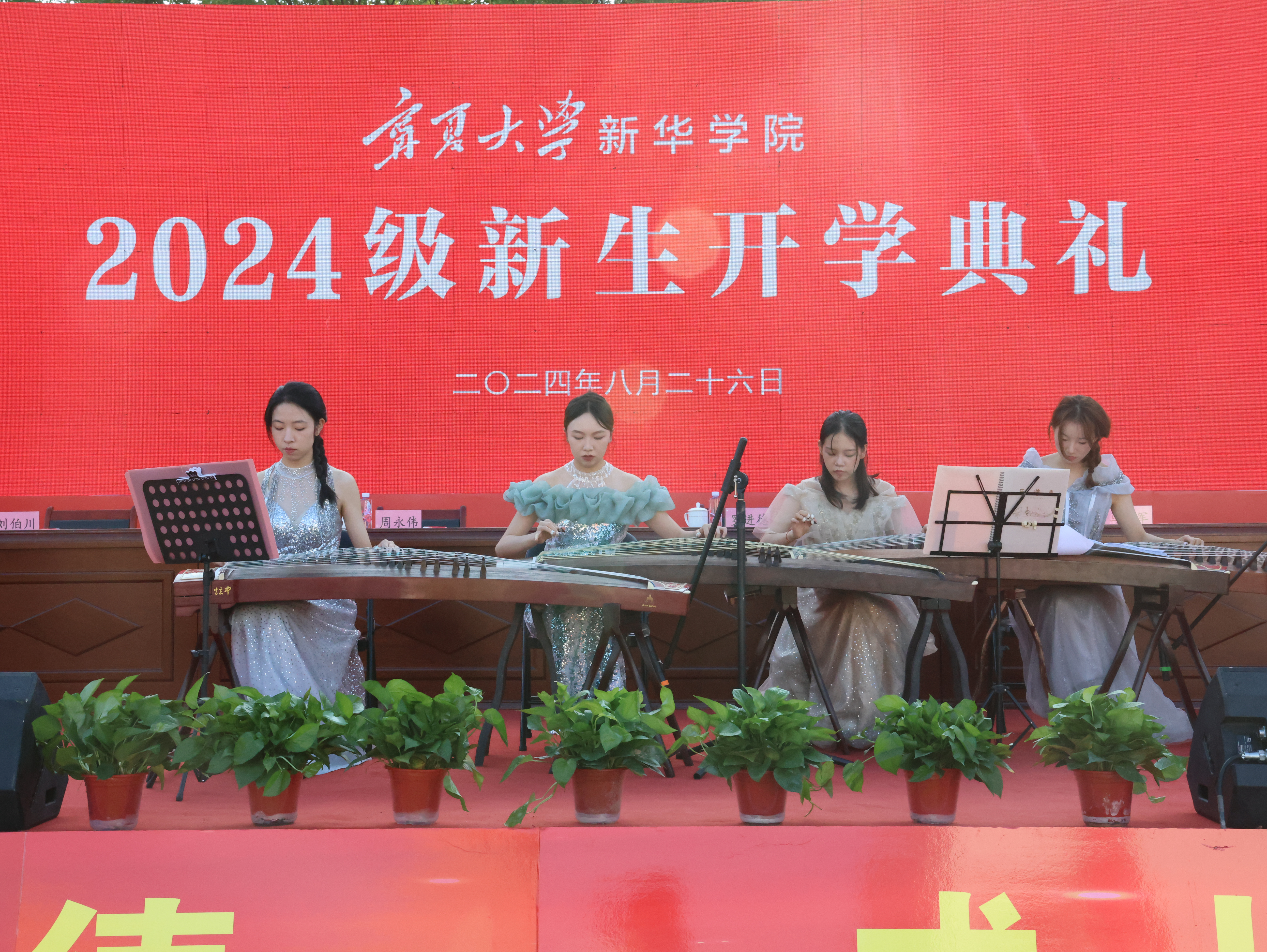典礼开始前,学院艺术与体育系音乐专业张嘉欣、惠欣冉、王雅茹、张佳丽等演奏古筝重奏《盛世国乐》。