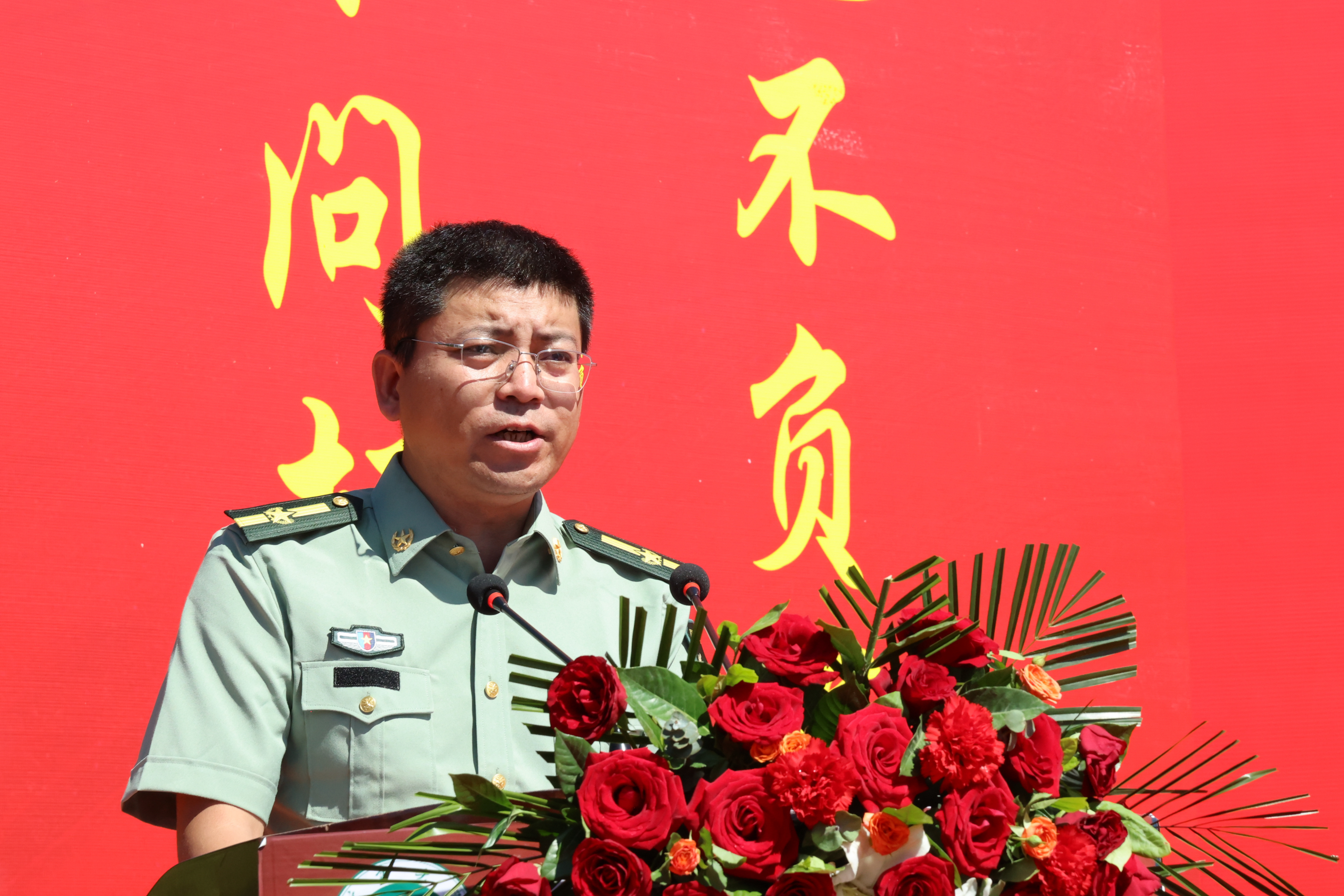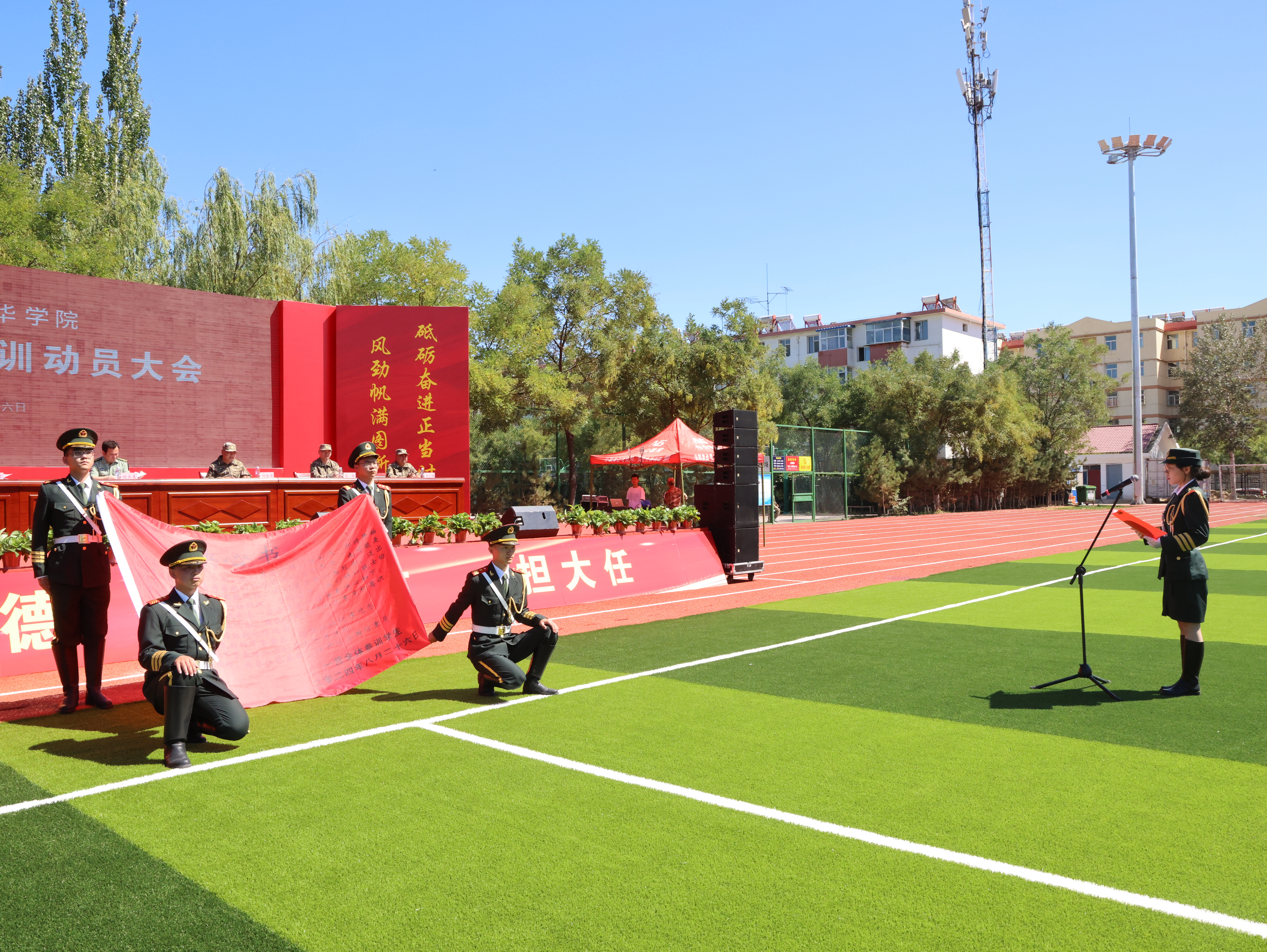 马小军作动员讲话,他代表学院向支持学院学生军训工作的武警宁夏总队某部的承训官兵致以崇高的敬意和衷心的感谢。他指出,军训是大学生接受国防教育的基本形式。通过集中系统的军事技能训练,同学们可以增强国防观念、国家安全意识和忧患危机意识,弘扬爱国主义精神,掌握一些军事基础知识和基本军事技能,提高同学们的综合国防素质。他希望同学们充分认识国防教育的重要意义,在军训期间始终以军人的标准严格要求自己,努力练就过硬本领,不断锤炼顽强拼搏的坚毅品格,打造吃苦耐劳的硬朗作风,养成自立自强的良好习惯,以饱满向上的精神风貌迎接大学生活。