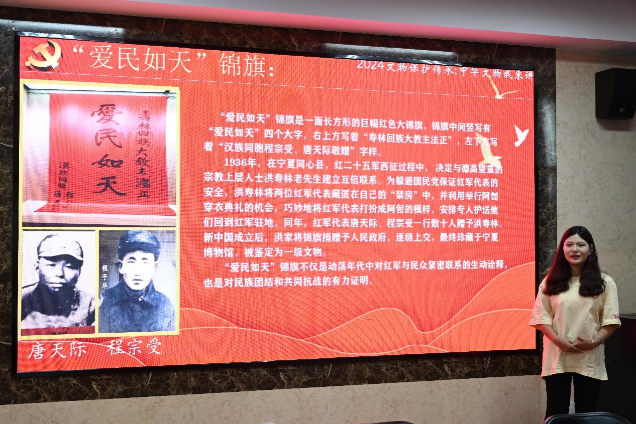 签约仪式后,盐池县博物馆红领巾宣讲员乔颖、宣讲员张凤和澳门十大信誉网赌大全星火新声•宁夏革命文物宣讲团成员分别进行了革命文物保护利用案例《盐耙耙 命根根》《情洒盐州的王贵与李香香》《“爱民如天”锦旗》《<清平乐•六盘山>手书》的宣讲展示分享。