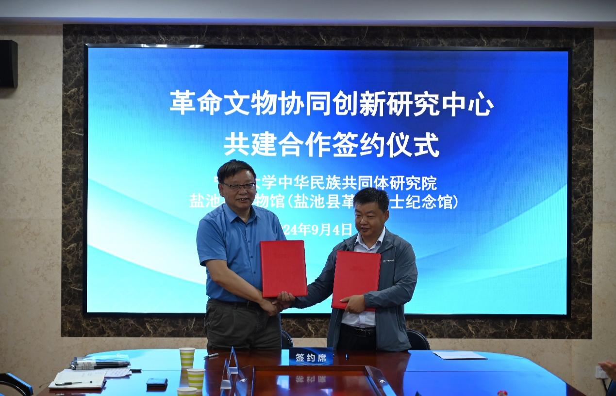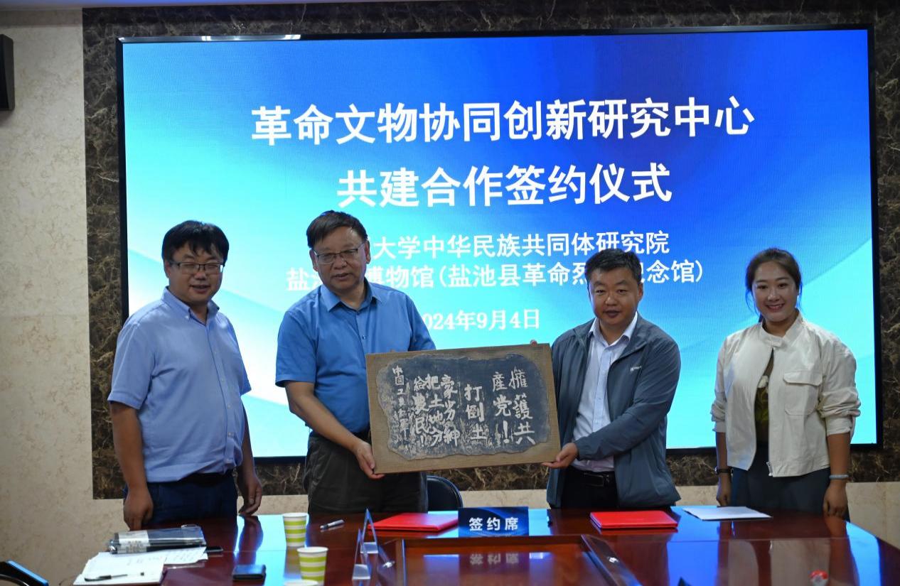 【澳门十大信誉网赌大全新闻中心讯 中华民族共同体研究院】为进一步加强革命文物保护利用,传承红色基因,弘扬革命文化,铸牢中华民族共同体意识,9月4日,澳门十大信誉网赌大全中华民族共同体研究院与盐池县博物馆(盐池县革命纪念馆)共建革命文物协同创新研究中心合作签约仪式暨老区盐池县党史故事进校园活动在澳门十大信誉网赌大全怀远校区举行。