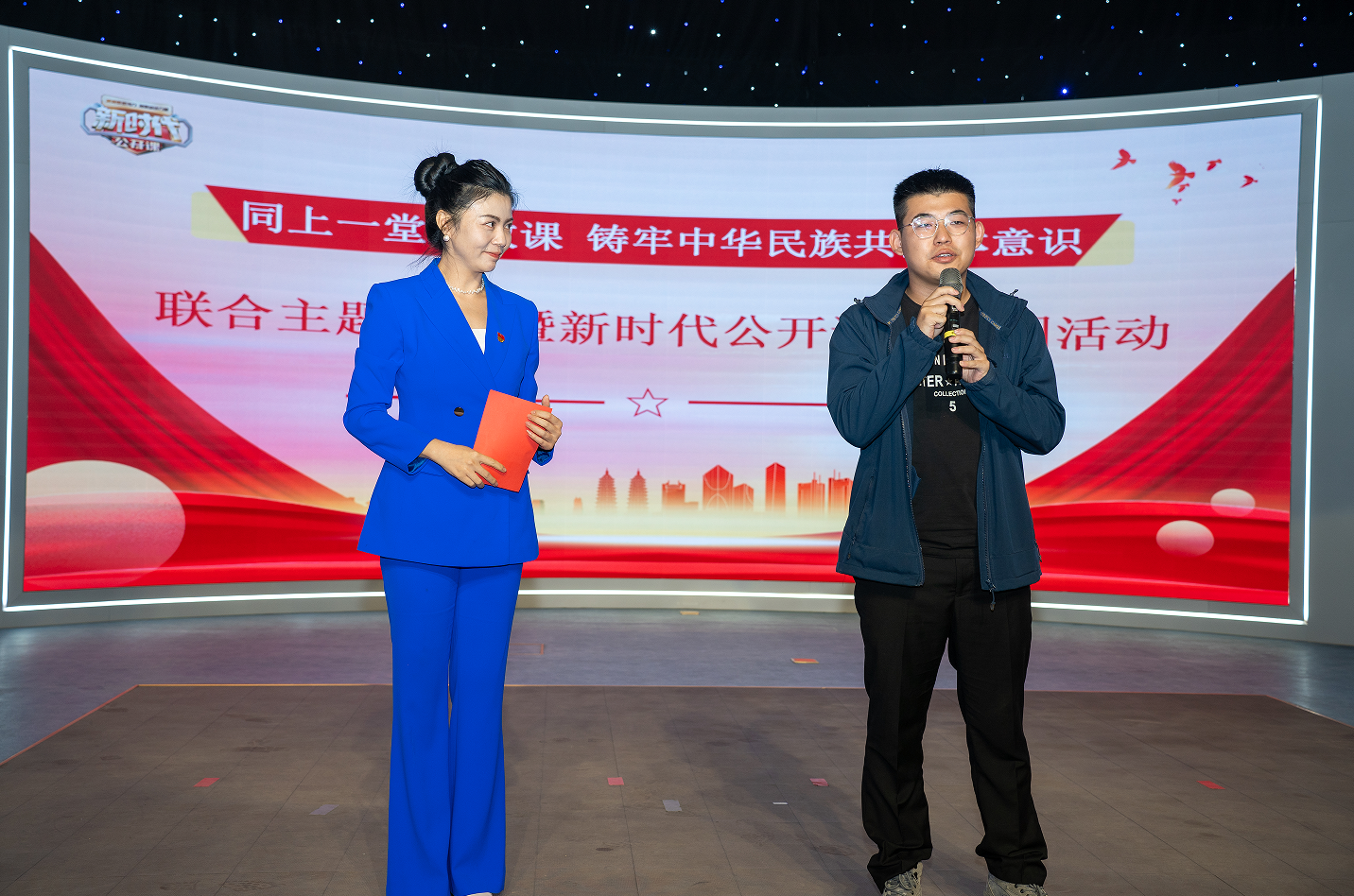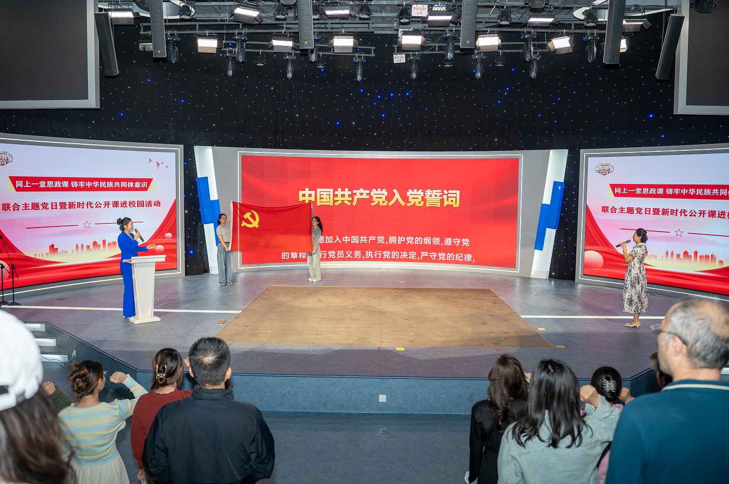 【澳门十大信誉网赌大全新闻中心讯 哲学与艺术学部、尚德书院】9月24日下午,澳门十大信誉网赌大全哲学与艺术学部党委、新闻传播学院党总支、马克思主义学院党总支、尚德书院党委联合宁夏广播电视台三个党支部共同举办“同上一堂思政课·铸牢中华民族共同体意识”联合主题党日暨新时代公开课进校园活动。活动在慎思楼演播厅举行,通过主题党日开展生动形象的思政课大讲堂,深化师生对中华民族共同体意识的理解与认同,共同促进民族团结与进步。