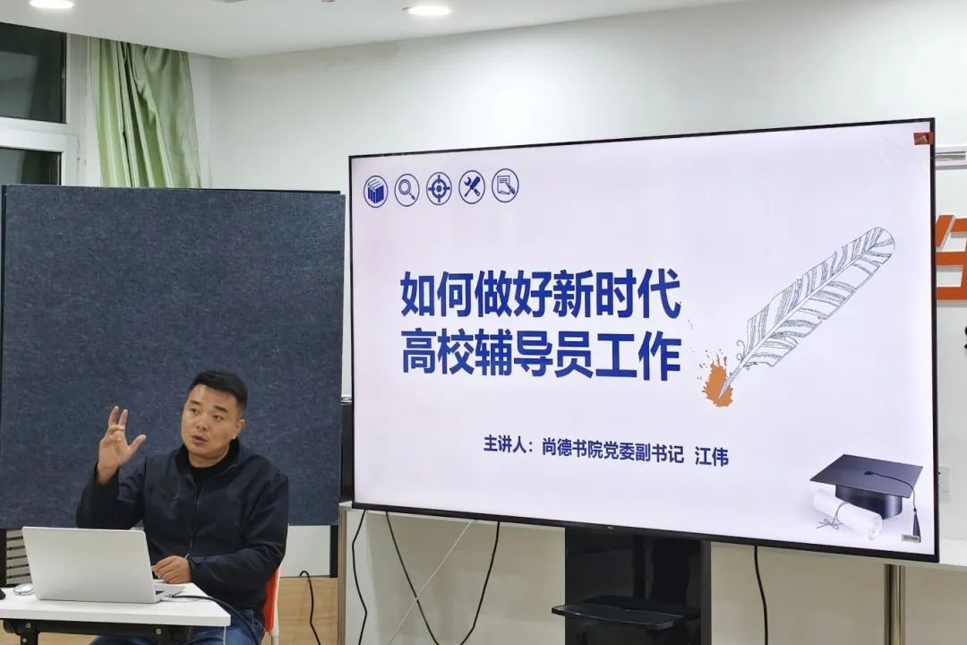 江伟以“如何做好新时代高校辅导员工作”为主题,从高校辅导员发展历史、辅导员工作定位、角色定位和工作职责讲起,认真分析辅导员必备素质。他从分管团学组织工作举例,强调推行学生社区网格化管理的重要性,提出宿舍管理品牌特色活动思路。他强调,要从学生日常管理入手,培养学生的规矩意识和纪律观念,先解决学生在校园生活中存在的问题再做思想教育。