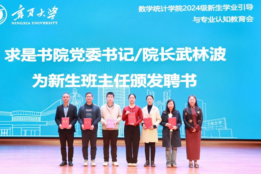 数理与信息学部党委书记常海波宣读了2024级新生班主任聘任名单。求是书院党委书记、院长武林波为新聘班主任颁发了聘书。