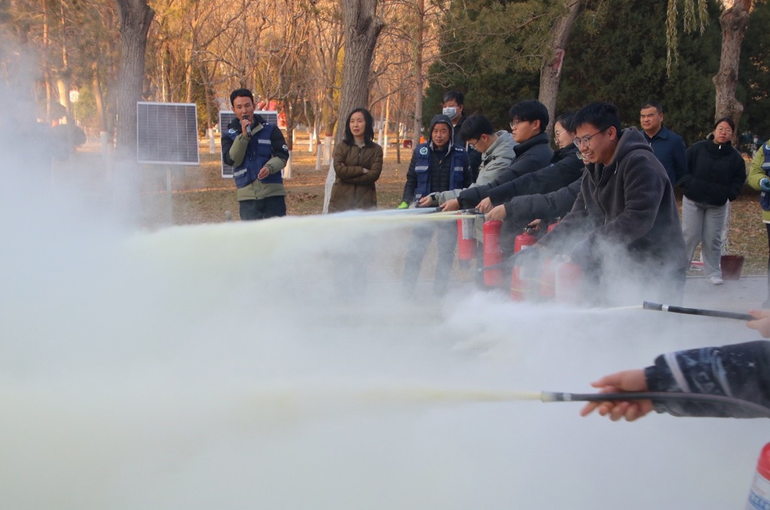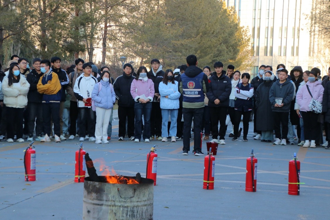 讲座结束后,保卫处专业人员讲解了灭火器与消防沙的使用方法,并进行了实地消防演练。