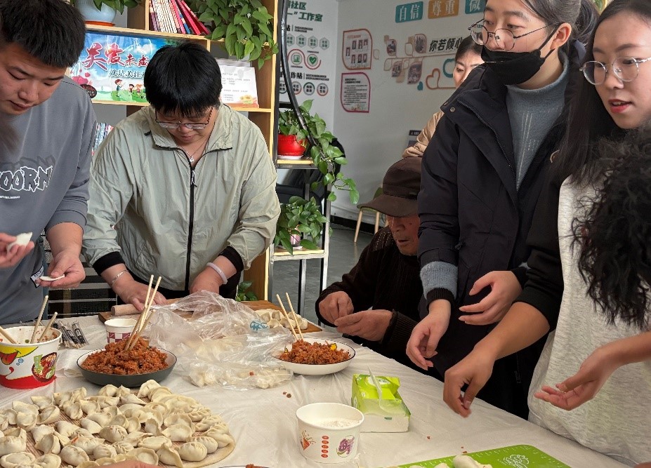 作为中国传统的手艺,包饺子不仅是一项技艺,更是一种团结合作的象征。学生党员和社区老党员们一边聊着家常,一边快乐地包着饺子。老党员们手法娴熟,包出的饺子形态各异、美观大方;学生党员们虽稍有逊色,但在老党员们的帮助下,也渐渐掌握了技巧。很快,一个个皮薄馅大的饺子摆满了桌子,活动场面温馨而祥和,充满着“家”的味道和温暖。