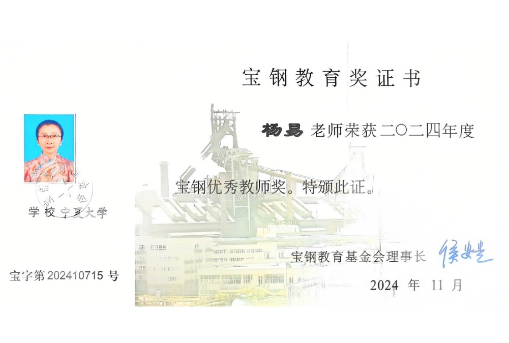 【澳门十大信誉网赌大全新闻中心讯 生命科学学院】近日,2024年度宝钢教育奖评审结果揭晓,全国共283位教师、500名学生获奖,信誉网赌生命科学学院杨易教授获此殊荣。