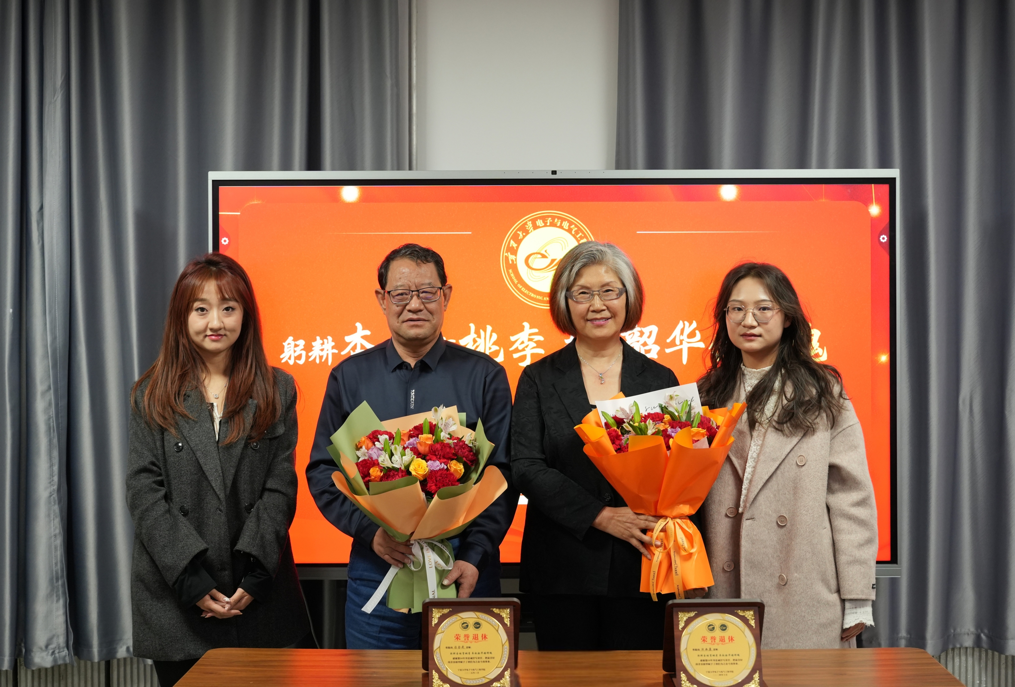 学院院长孙学宏代表学院向两位老师光荣退休表示祝贺,对他们为学校教育事业和学院发展做出的贡献表示感谢。希望退休老师人退心不退、离岗不离心,继续关心和支持学院的发展,有空常回学院看看,继续发光发热,将教学经验传授给年轻教师们,为学院高质量发展建言献策,再做新贡献。