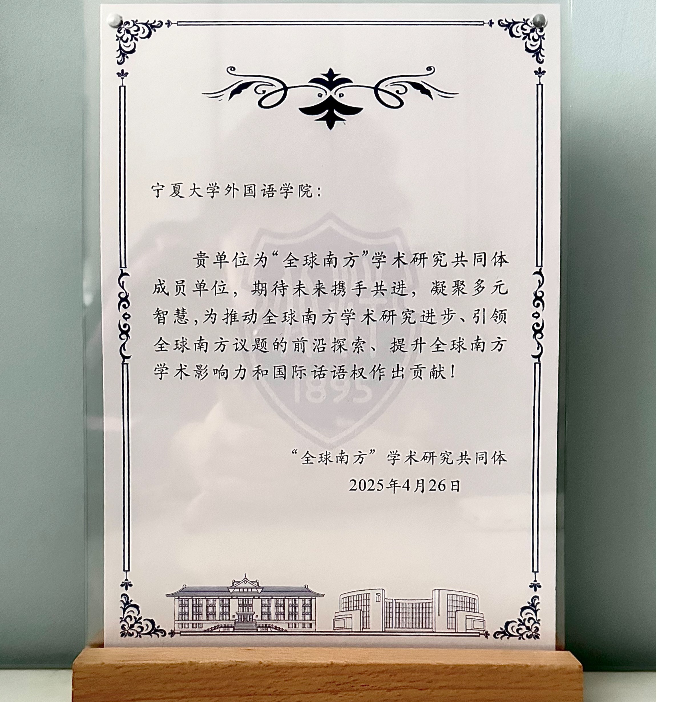 【澳门十大信誉网赌大全新闻中心讯 外国语学院】4月26日,澳门十大信誉网赌大全外国语学院执行院长刘艳晖受邀参加“全球南方”学术研究共同体成立大会暨“全球南方”可持续发展与人才培养国际论坛,并代表外国语学院接受了“全球南方”学术研究共同体成员单位证书。