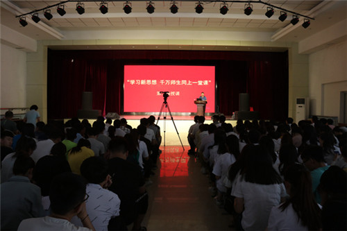 在“学习新思想 千万师生同上一堂课活动”第二场授课中,赵晓瑞从什么是中国精神、中国精神在哪里、如何弘扬中国精神三个方面作了《中国精神》主题授课。赵晓瑞希望同学们把中国精神安放内心,把中国精神付诸行动,把中国精神视为使命,成为社会主义建设者和接班人,不辱时代使命,不负人民期望。近六百名师生参加了学习。