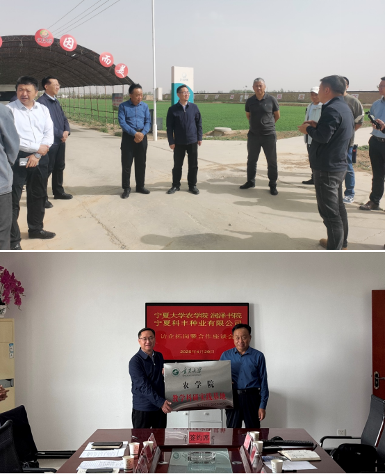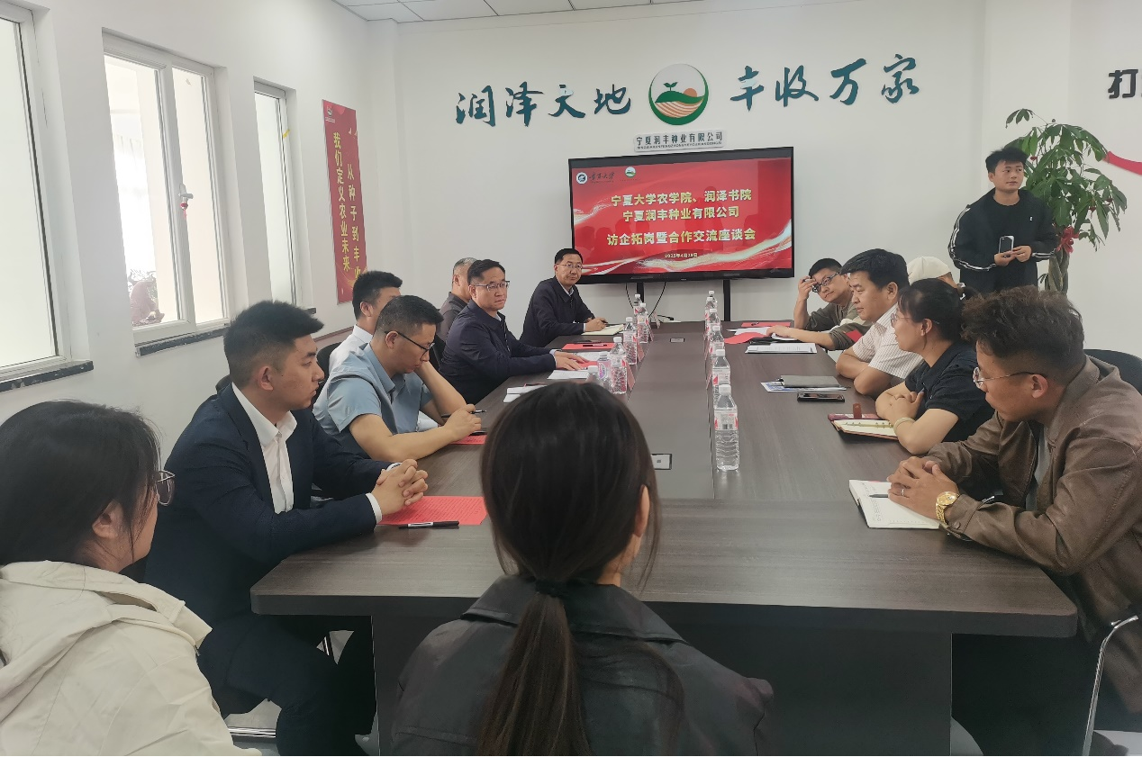 【澳门十大信誉网赌大全新闻中心讯 农学院】为深化校企合作,拓宽毕业生就业渠道,促进产学研深度融合,4月29日,校党委常委、纪委书记马元带队农学院、润泽书院相关负责人及教师学生代表一行赴宁夏科丰种业有限公司、宁夏润丰种业有限公司开展“访企拓岗促就业”专项行动,并与企业管理人员开展座谈交流,相关企业代表现场推介岗位需求,双方就人才培养、实习实训、产教融合等展开深度讨论。
