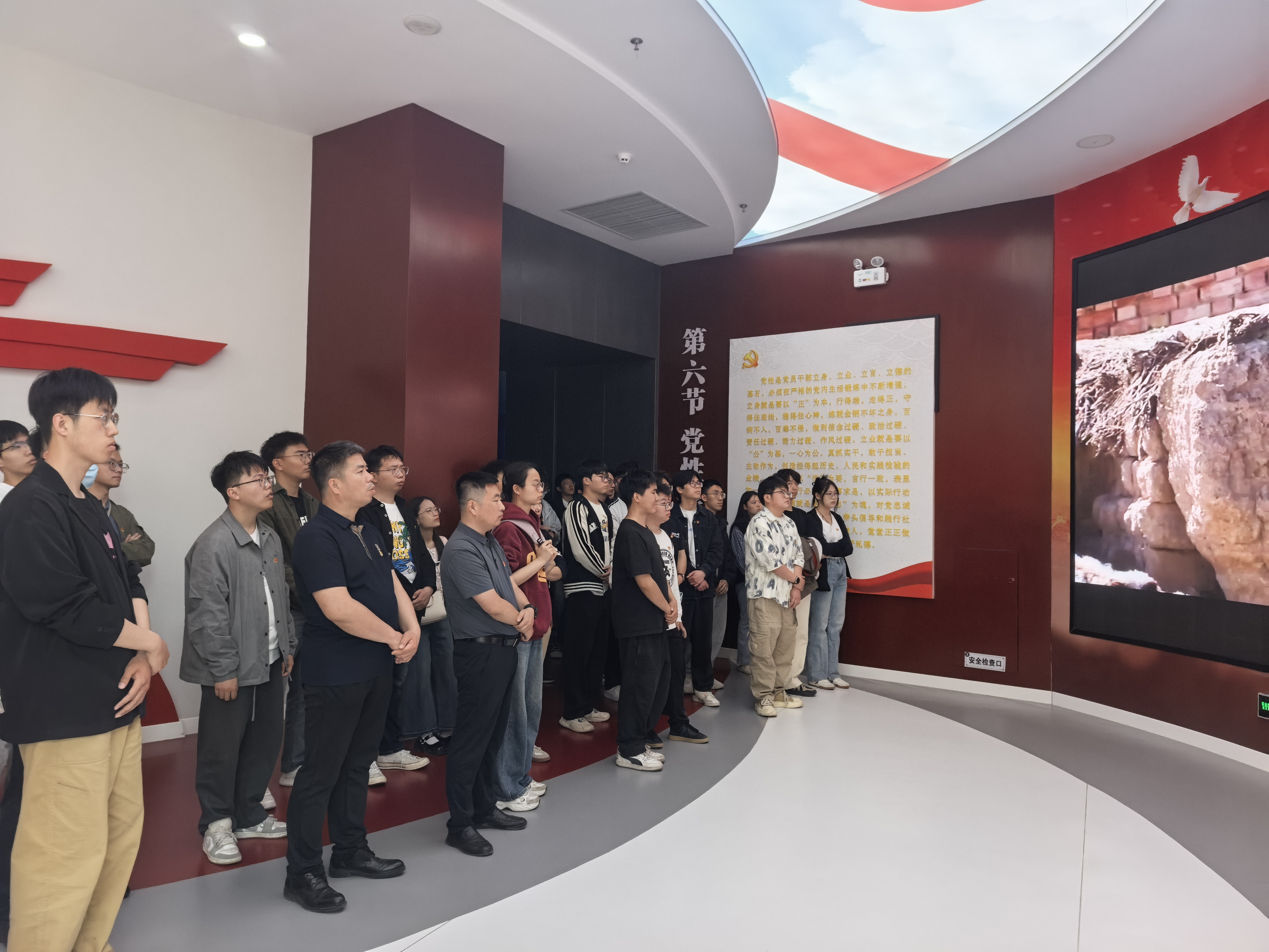 参观结束后,全体党员面对党旗,庄严宣誓,重温入党初心。