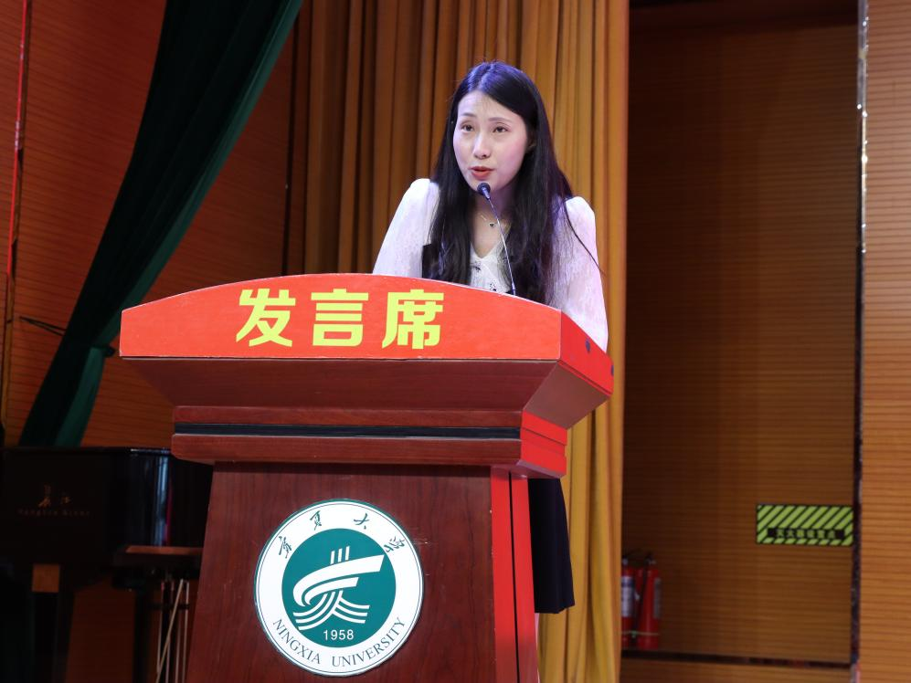 前沿交叉学院杨莹莹老师作为教师代表发言,她向同学们送上殷殷嘱托和深深祝福,希望同学们带着“海纳百川”的胸襟与智慧,在未来的广阔天地中持续学习,兼容并蓄,勇立潮头,勇敢地投身于国家发展、民族复兴的时代洪流,在解决复杂问题中定义未来。