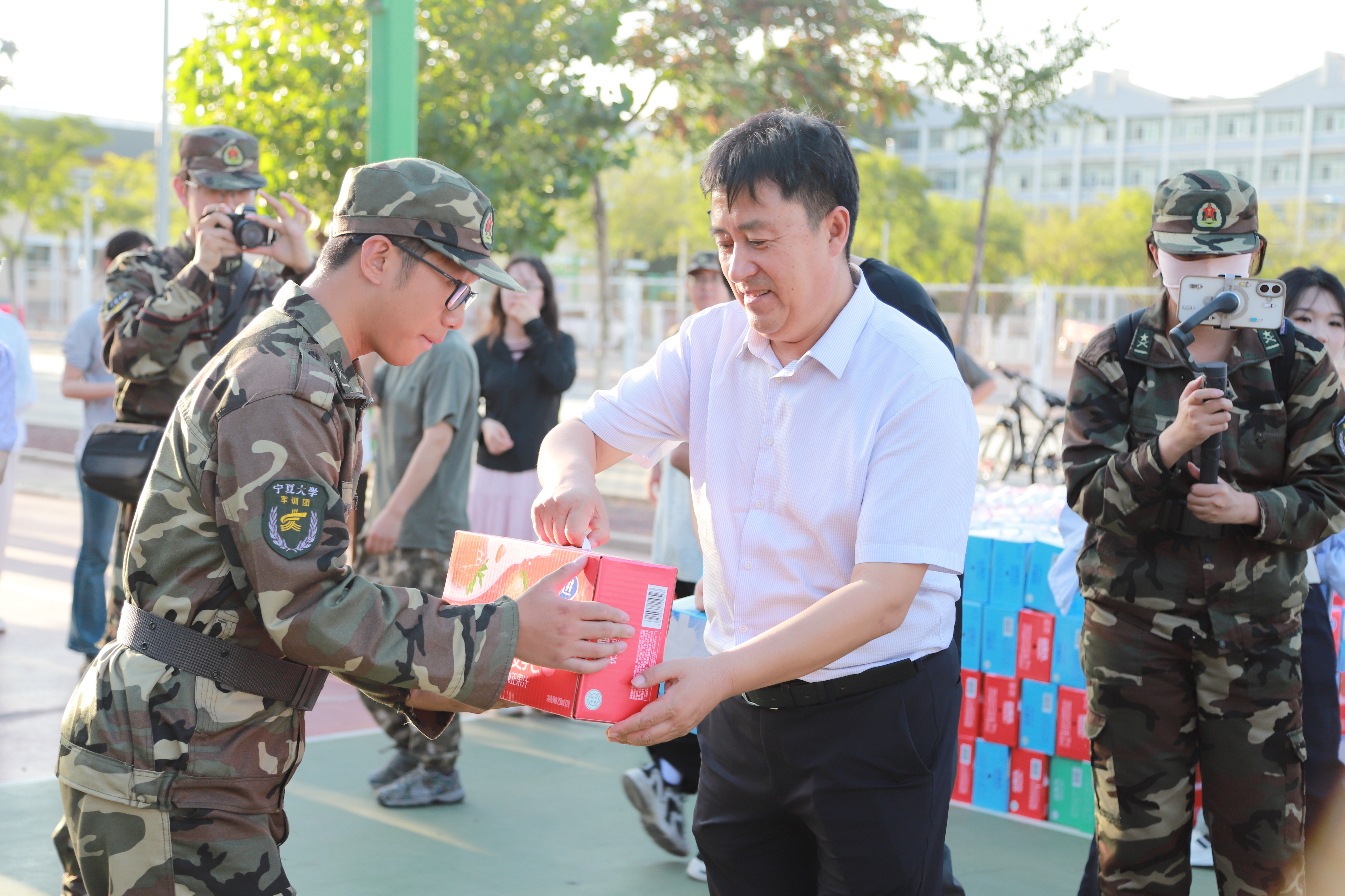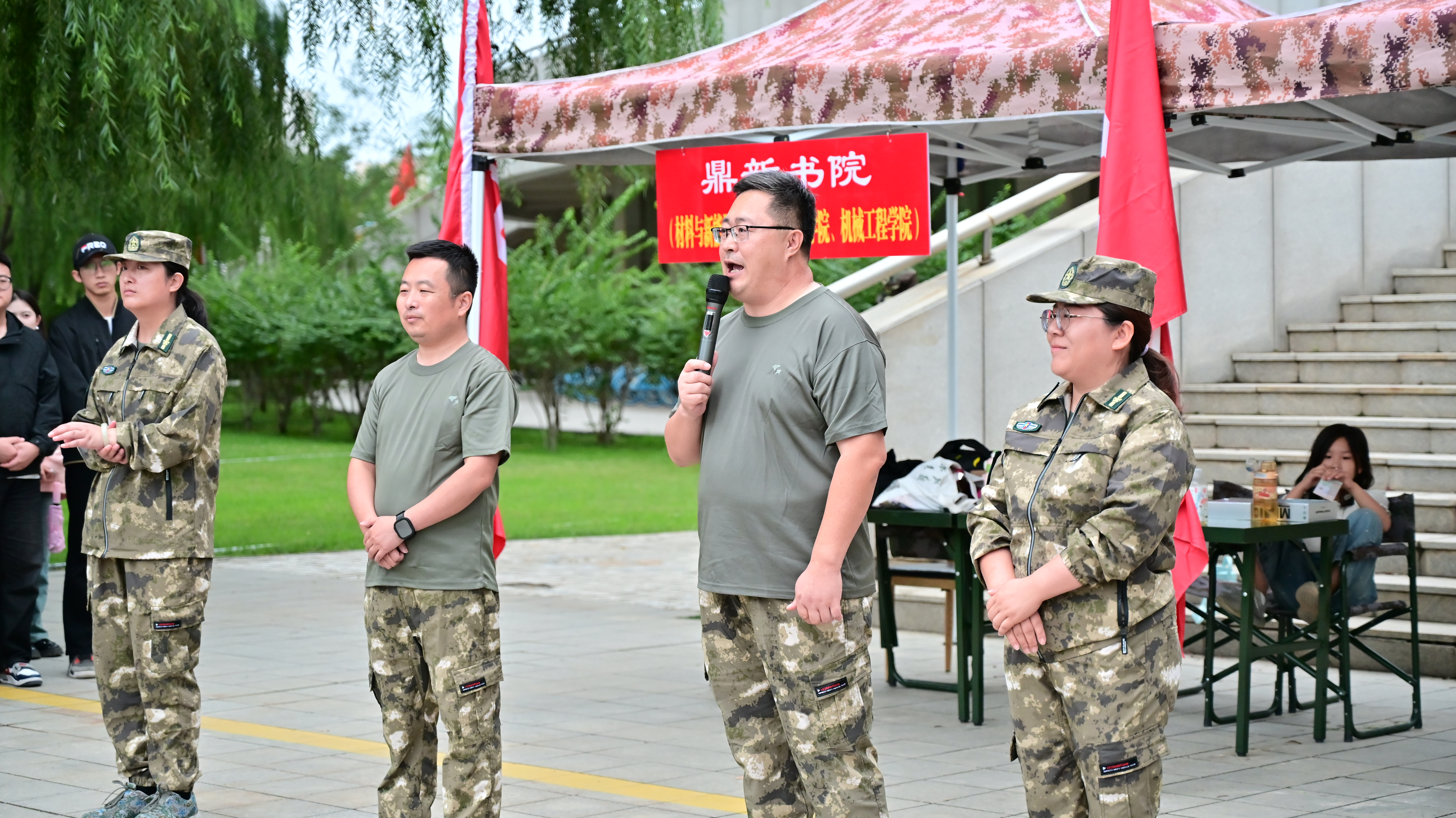 9月3日,机械工程学院、化学化工学院、材料与新能源学院、前沿科学与技术学部、鼎新书院的领导老师共同来到训练场,慰问此次参训的各位同学。“军训练的是意志,更是未来科研路上的‘韧劲’,要把这份坚持融入科研报国之路!”前沿科学与技术学部常务副部长、机械工程学院执行院长张波的叮嘱让新生备受鼓舞。