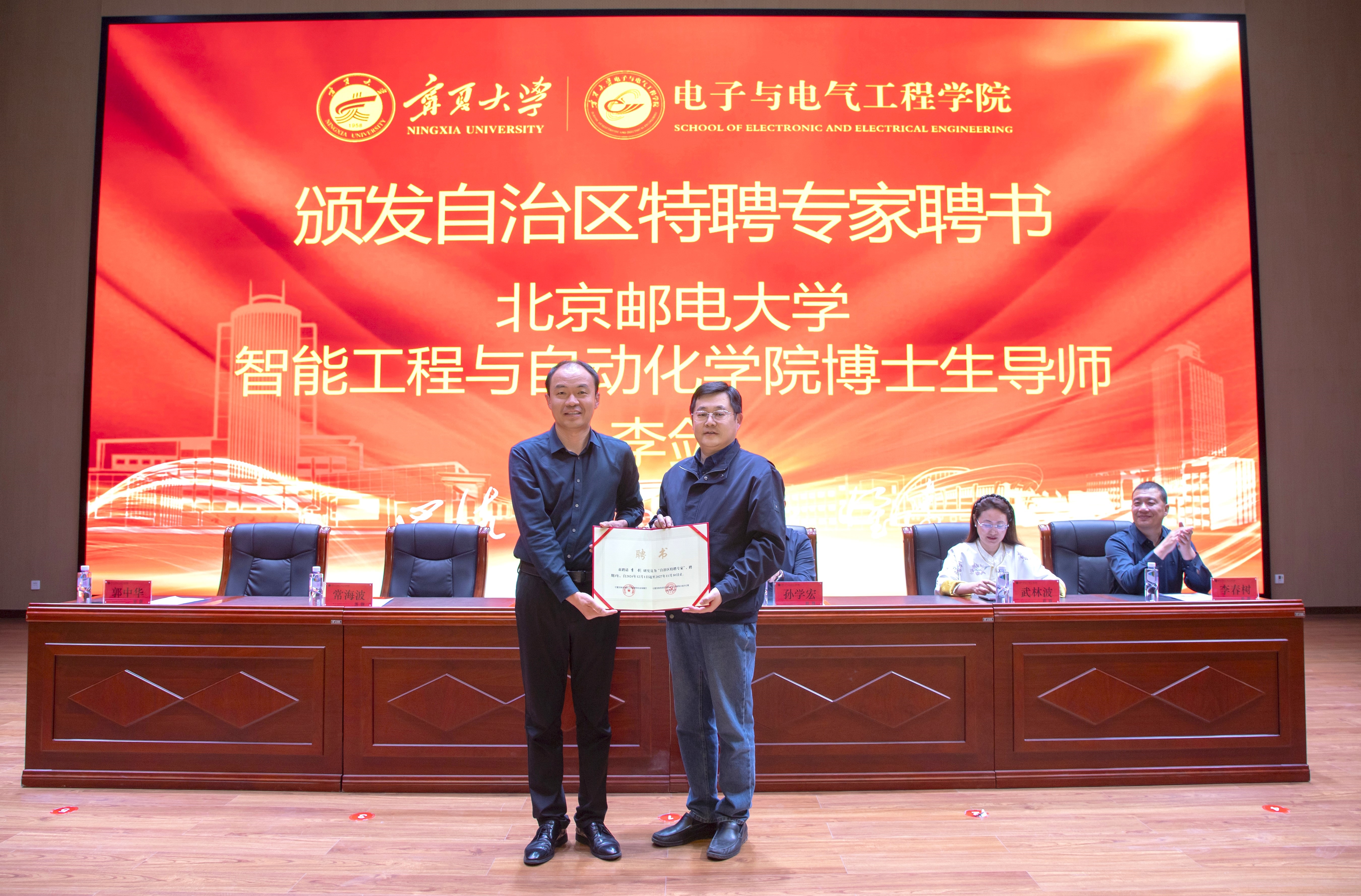 企业代表、宁夏电通物联网科技股份有限公司刘绍祥总经理结合自身从文科跨界科技领域的经历,强调了核心能力培养的重要性。他勉励同学们“立鸿鹄之志、秉求真之魂、修明德之品、持挑战之勇”,并表示将持续深化产学研合作,为学生搭建优质实践平台。校外研究生导师、北京邮电大学李剑教授寄语新生:要志存高远、勇于探索创新;脚踏实地、恪守学术诚信;注重多学科交叉融合,保持身心健康,在科研道路上不断砥砺前行。学院青年教师扈洁博士以校友与教师的双重身份,围绕“视野格局、自律选择、探索坚韧”三方面分享感悟,鼓励新生勇于突破舒适区,在试错中成长,并承诺全力支持学生学业发展。在校生代表王铭韬以“目标为灯塔、资源为风帆、试错为勇气”为关键词,分享成长经验。2025级研究生新生代表何若冰从“空档期”的思考出发,提出要“以空杯心态迎接挑战,以坚韧意志砥砺前行”,在知识边界上勇敢探索,共同书写精彩的学术篇章。本科新生代表豆海涛以纪念抗战胜利80周年阅兵中的科技装备为引,阐述了选择通信工程专业的初心,号召同学们将个人成长融入“网络强国”“数字中国”战略,勇担时代使命。